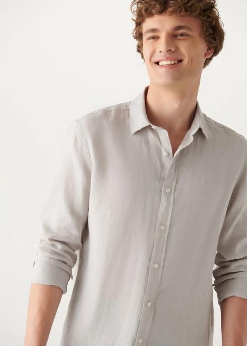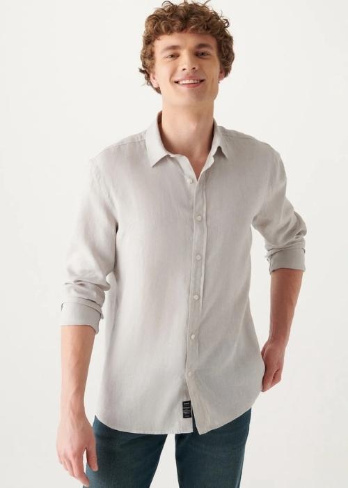 AÇIK GRİ RAHAT KESİM HAM KETEN GÖMLEK