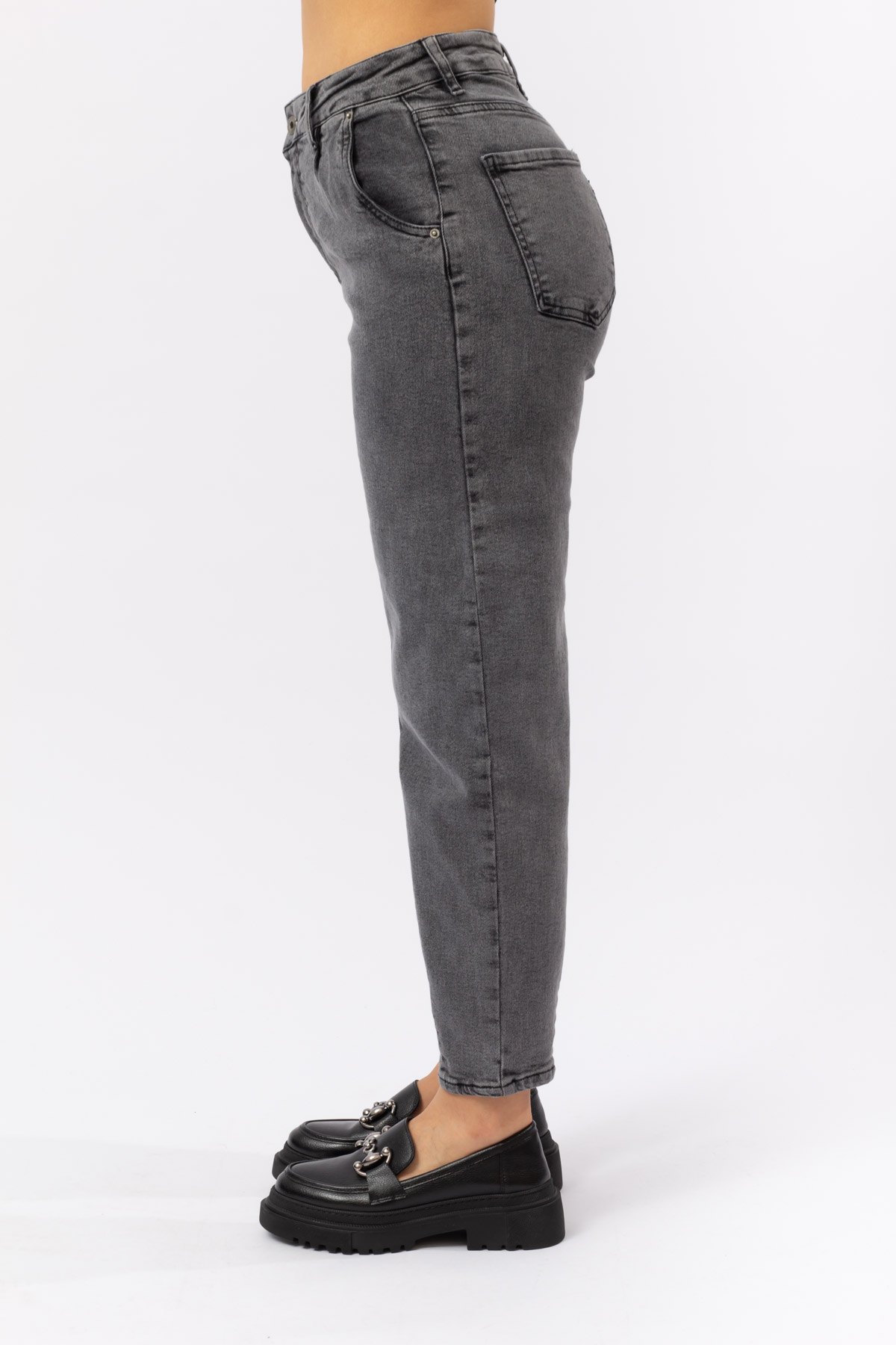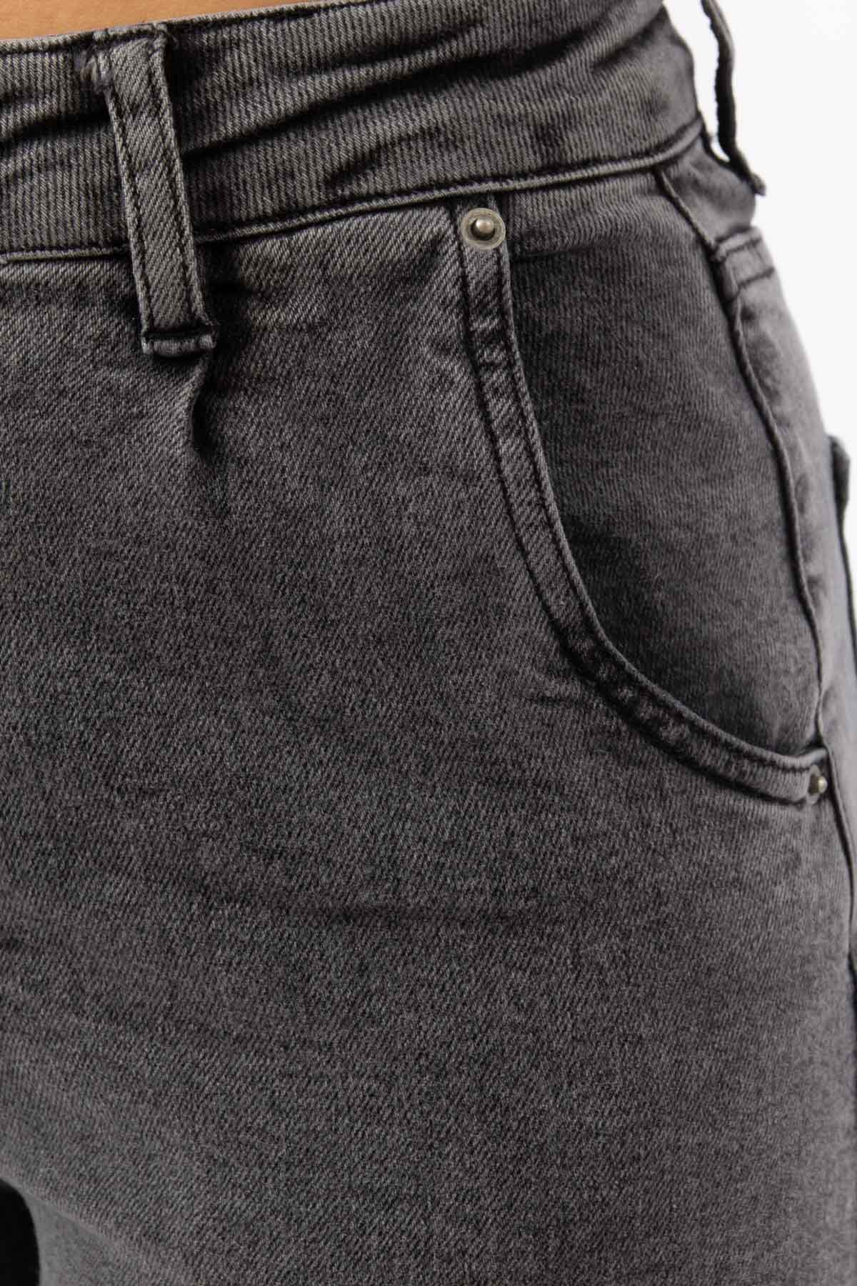 ANTRASİT DENİM YÜKSEK BEL YAN CEP DARALAN PAÇA JEAN PANTOLON