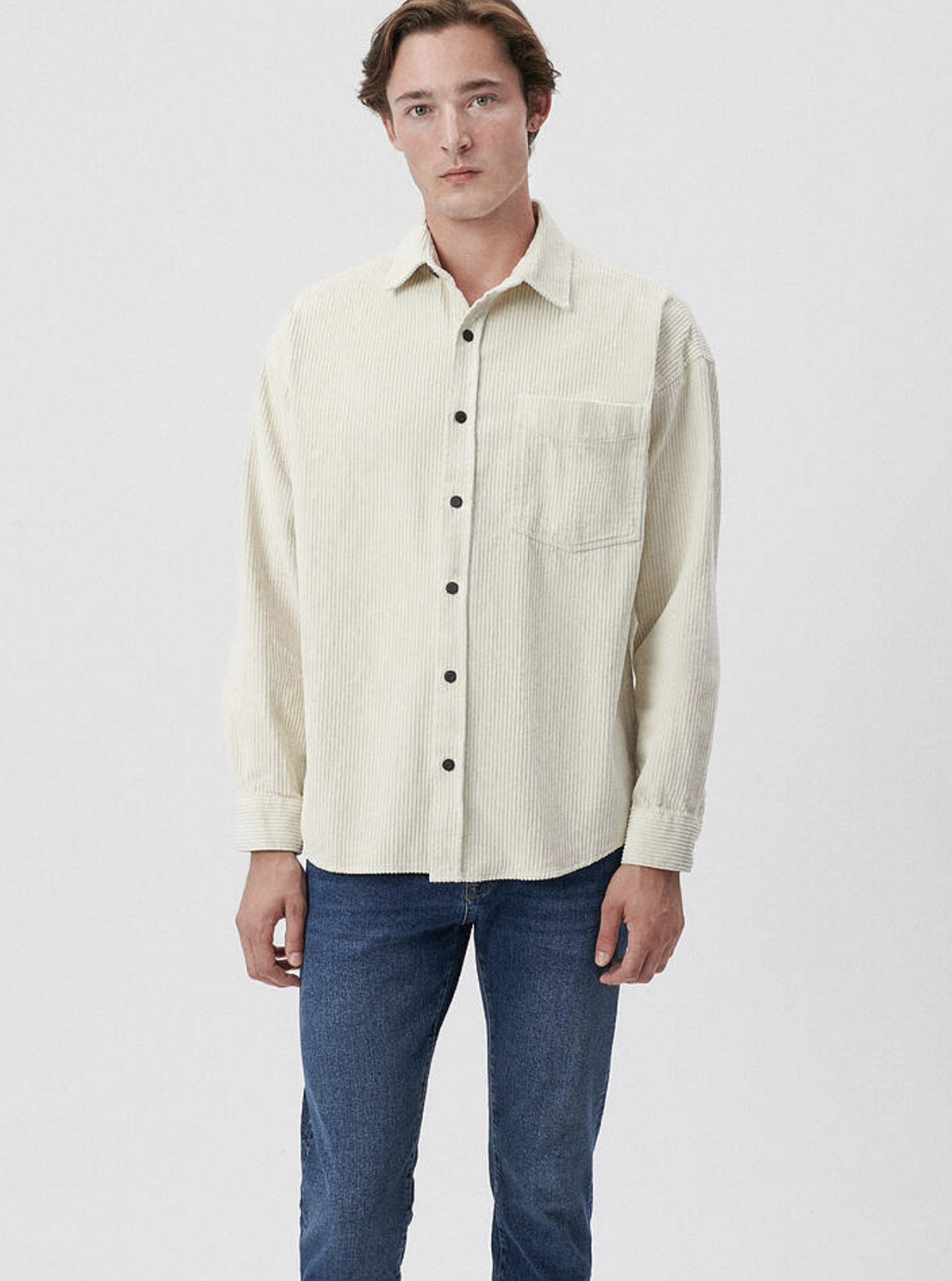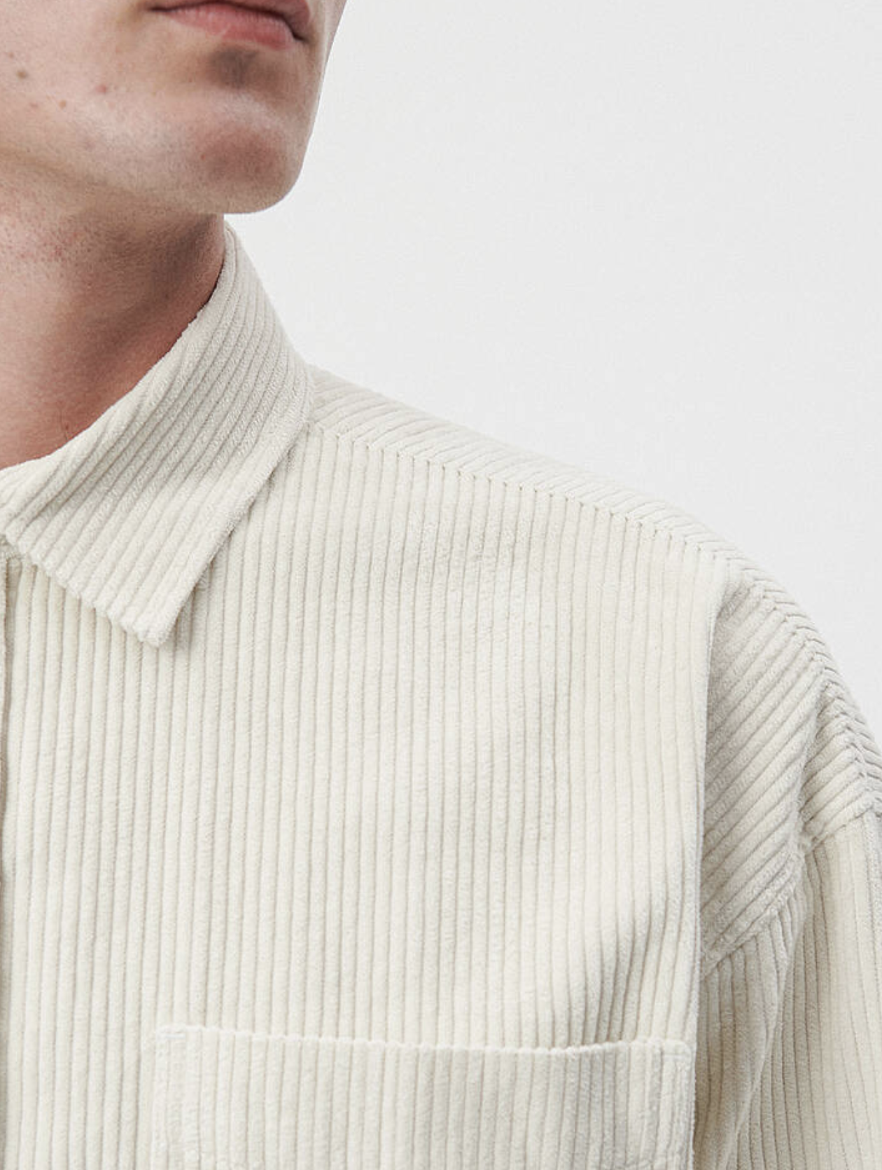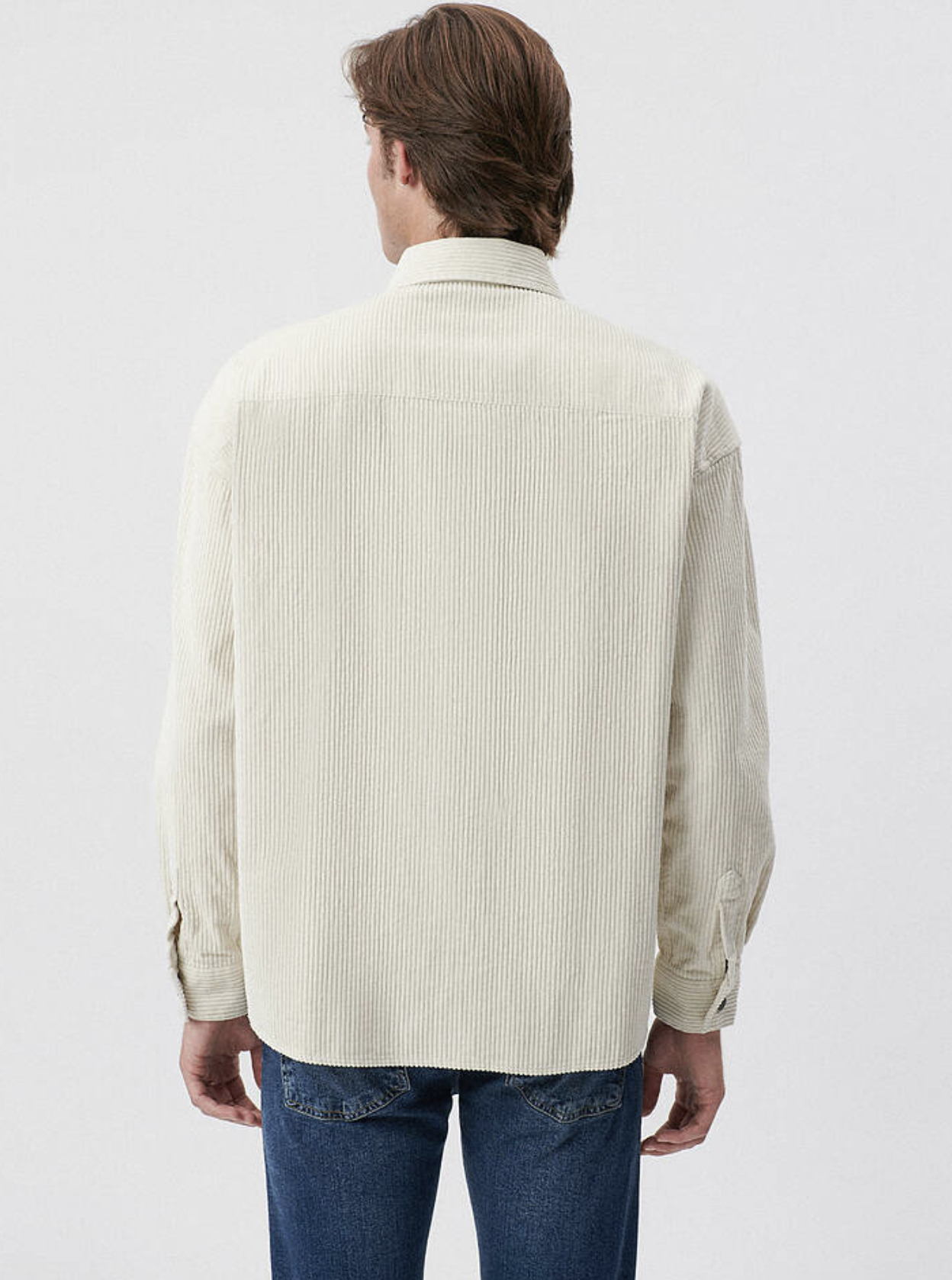BEJ GENİŞ KESİM KADİFE GÖMLEK