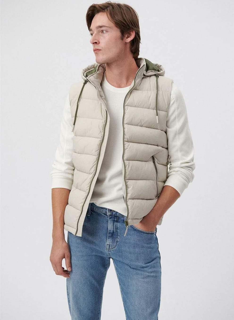 BEJ KAPÜŞONLU REGÜLER KESİM ŞİŞME YELEK