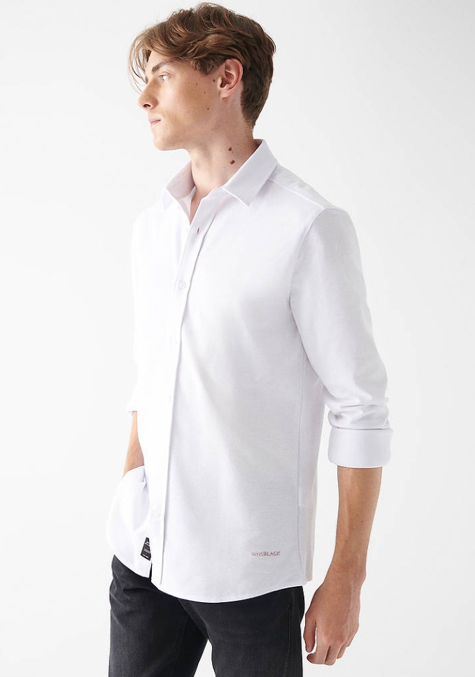 BEYAZ PETEK DOKULU SLİMFİT GÖMLEK