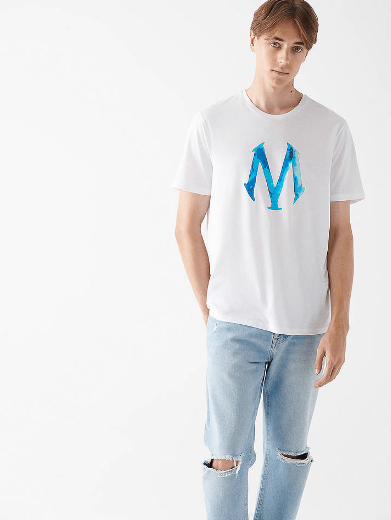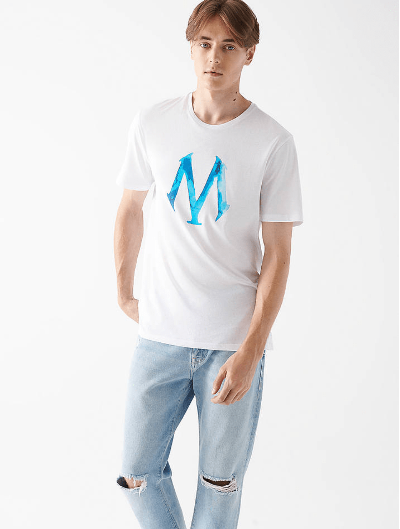 BEYAZ RENK MAVİ LOGO BASKILI TİŞÖRT