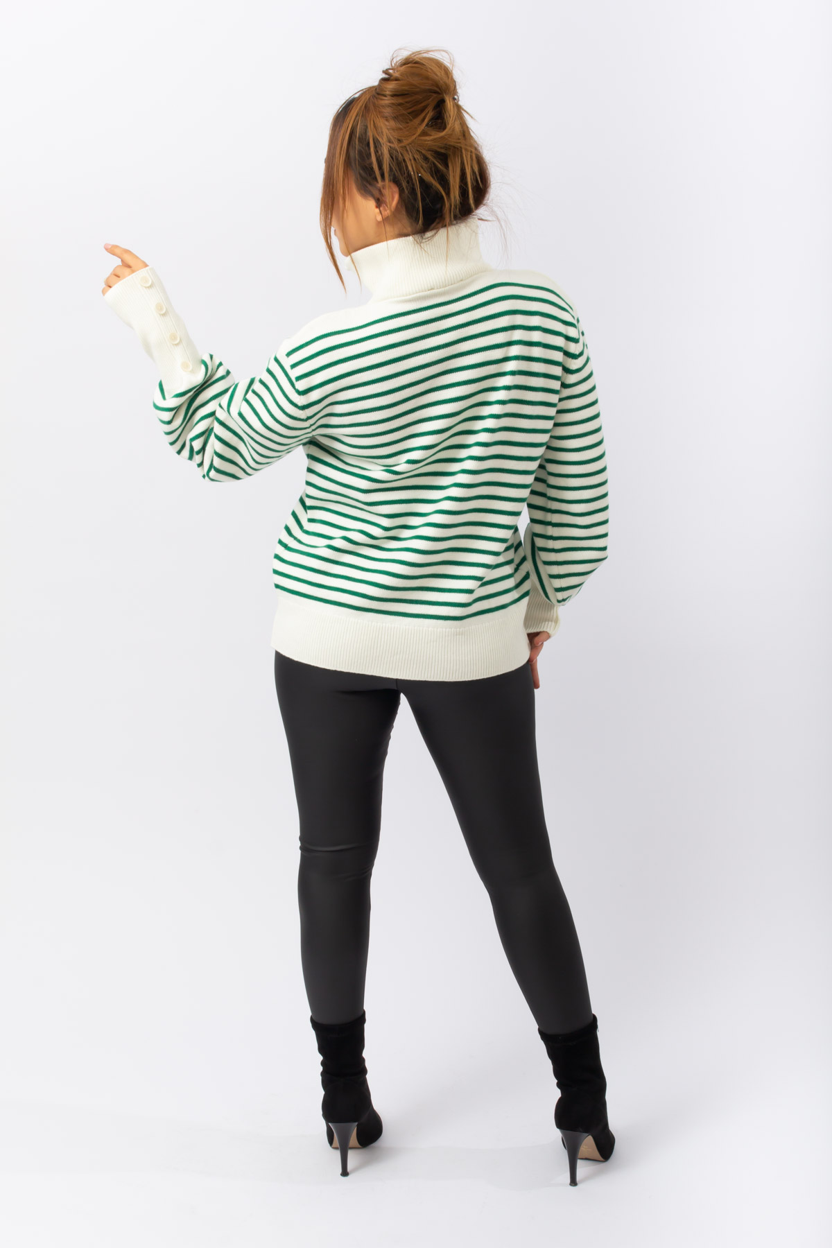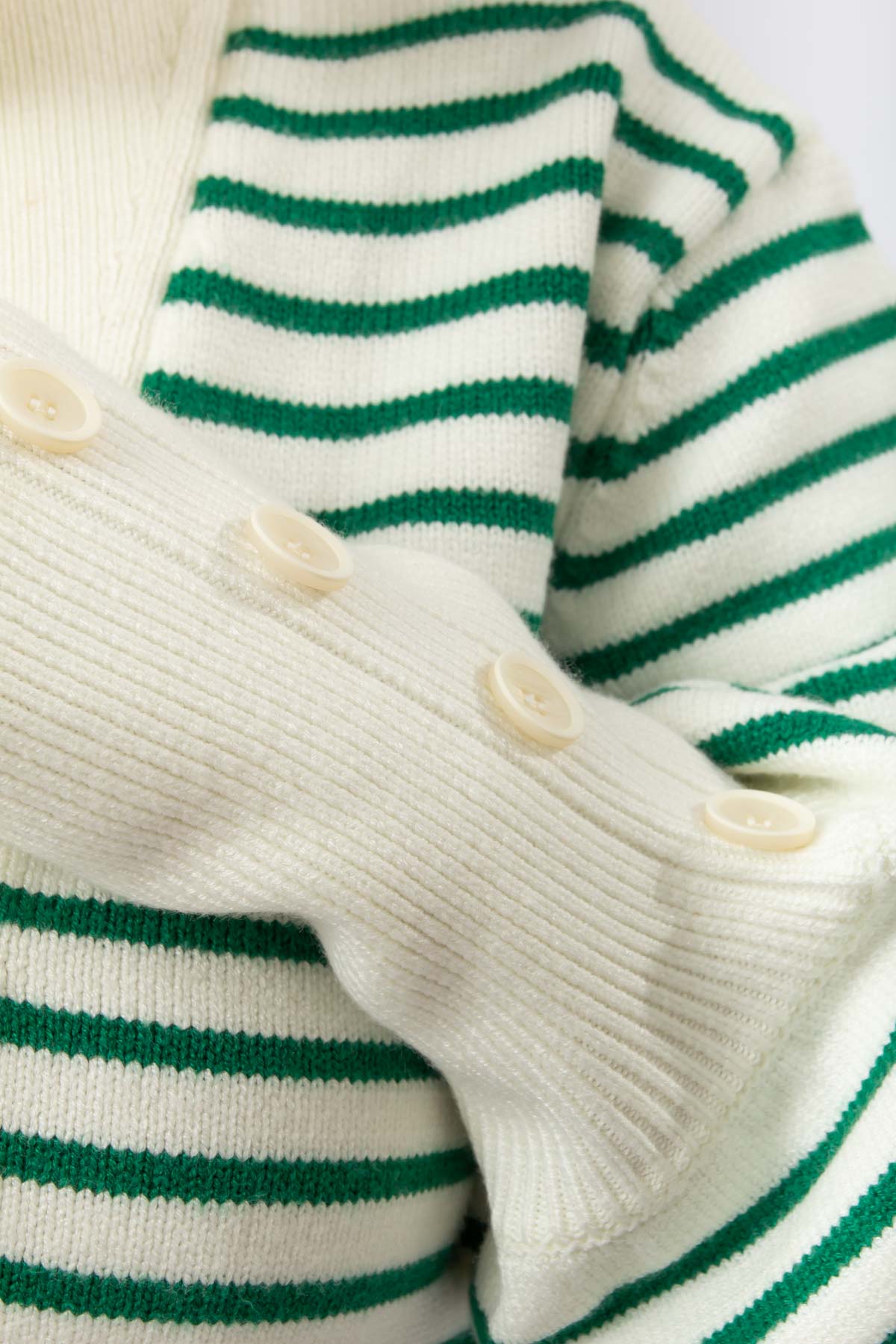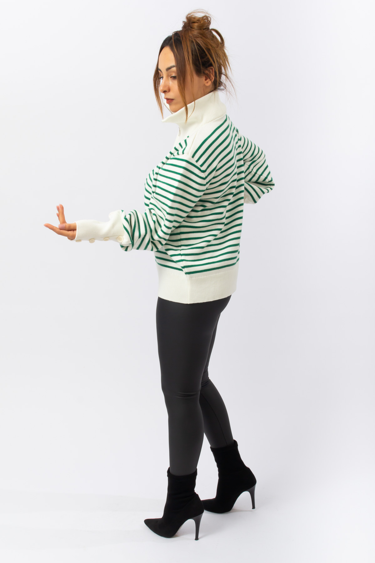 BEYAZ RENK YEŞİL ÇİZGİLİ FERMUARLI KAMYONER YAKA KAZAK