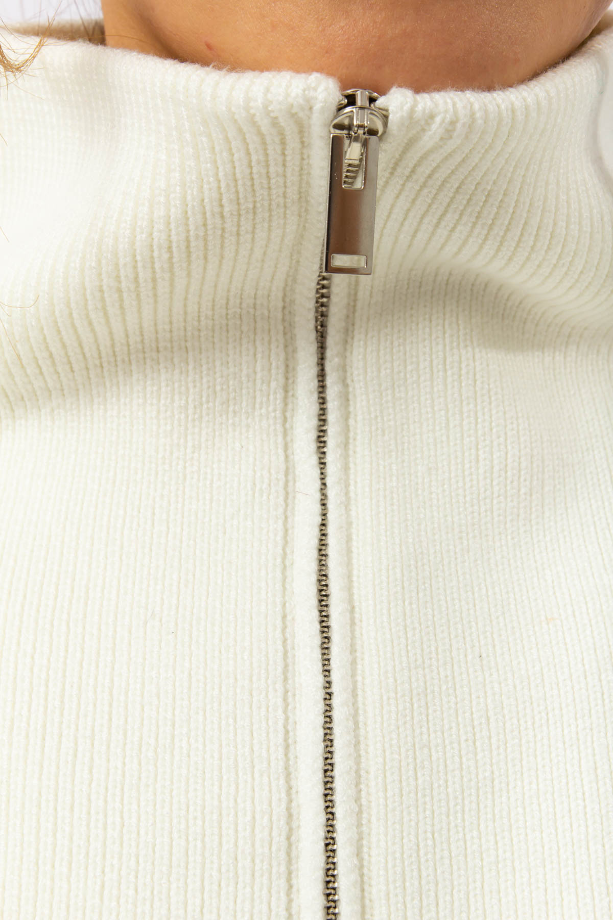 Krem Renk Fermuarlı Saç Örgü Kamyoner Yaka Kazak