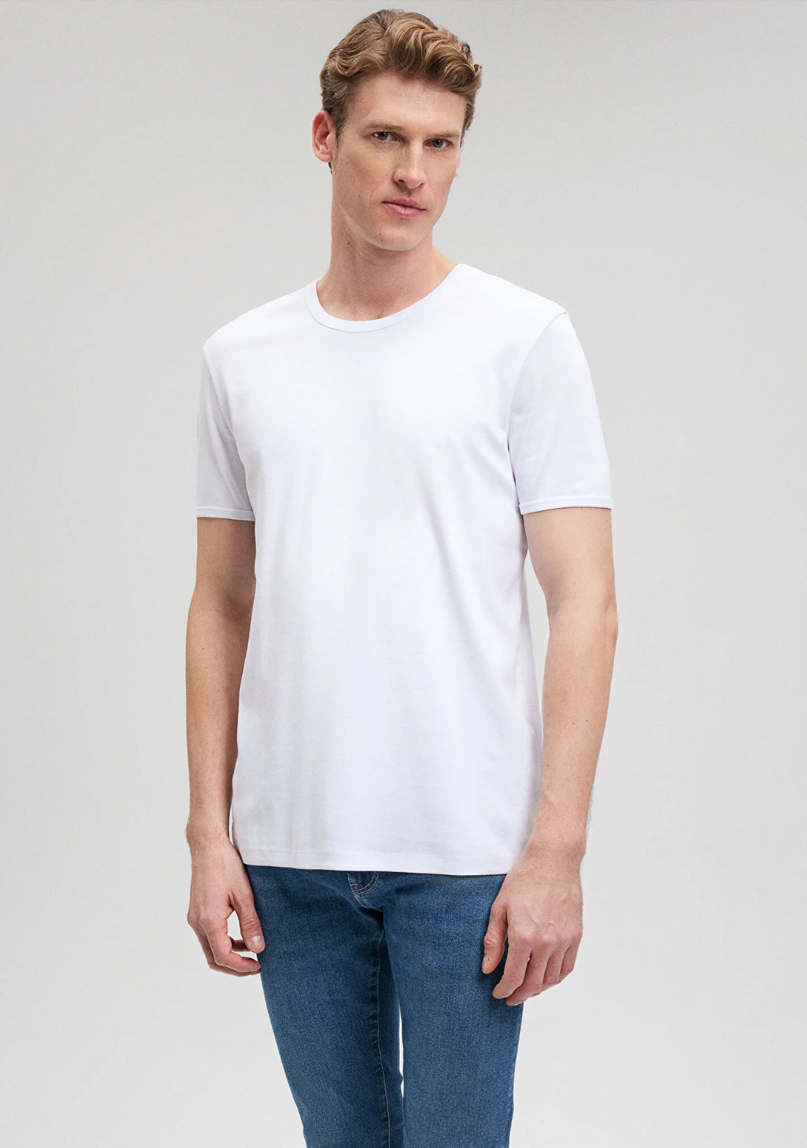BEYAZ RİBANA PAMUK SIFIR YAKA TİŞÖRT