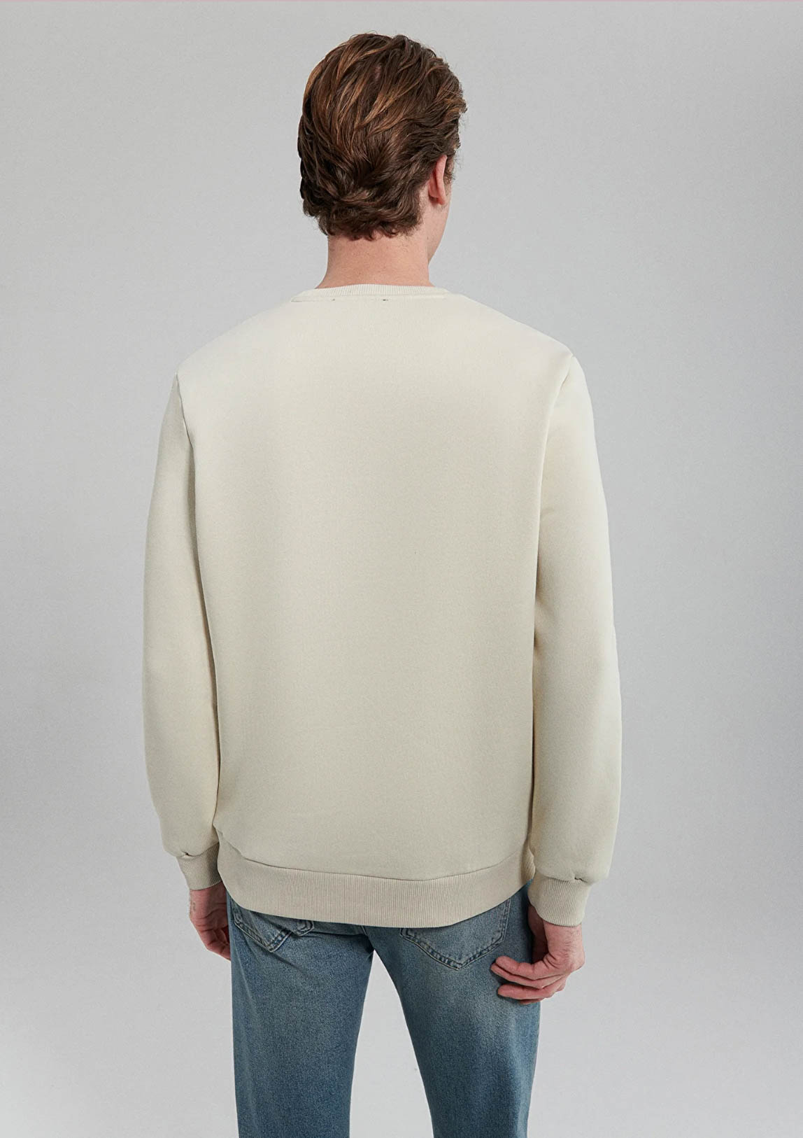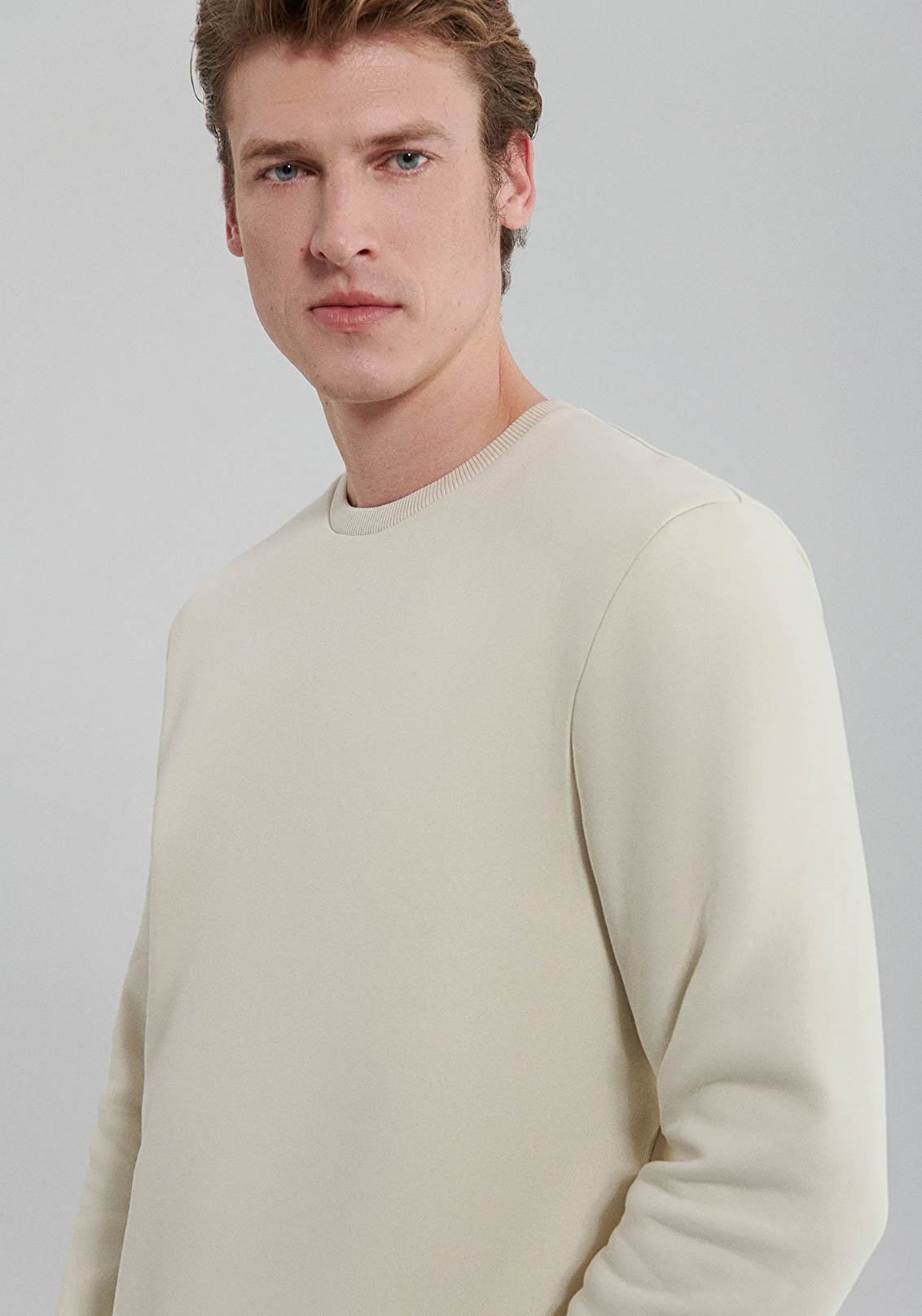 BİSİKLET YAKA BEJ ŞARDONLU BASİC SWEATSHİRT