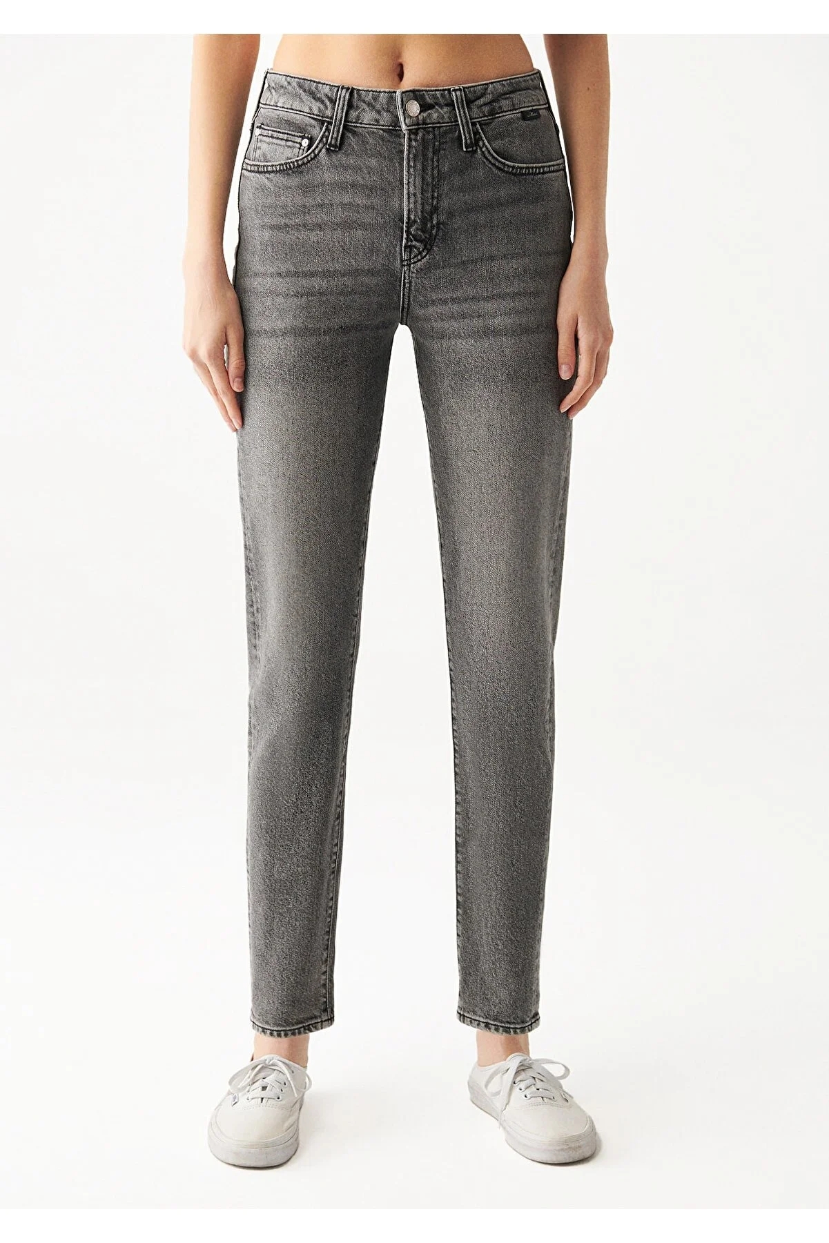 CİNDY YÜKSEK BEL DARALAN PAÇA AÇIK GRİ MOM JEANS PANTOLON