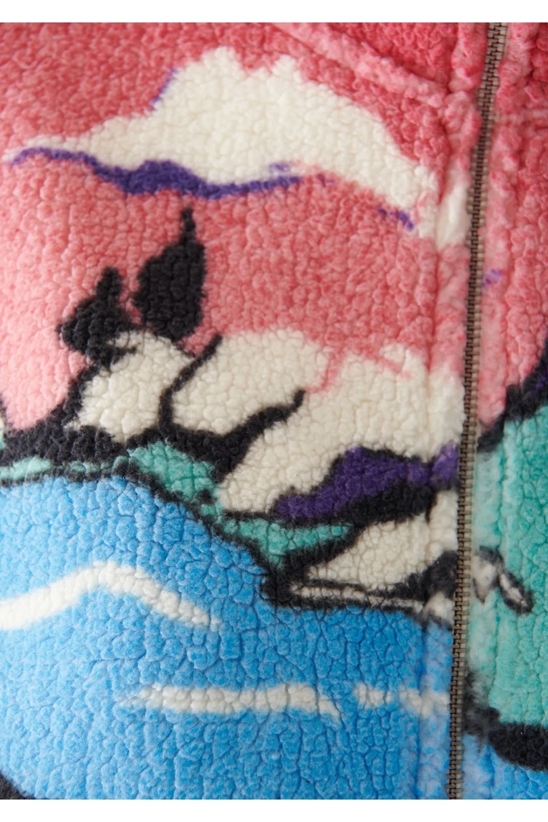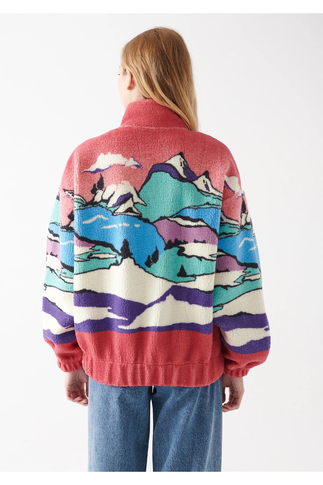 DİK YAKA PELUŞ SWEATSHİRT CEKET LİLA MANZARA BASKILI