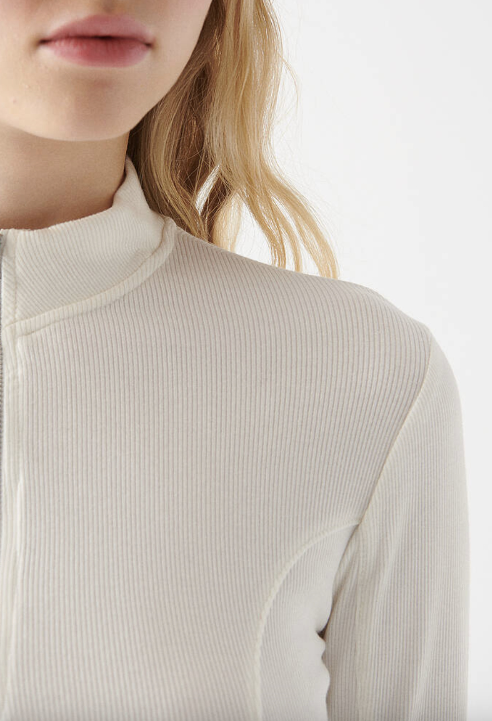 FERMUARLI DİK YAKA KIRIK BEYAZ BLUZ