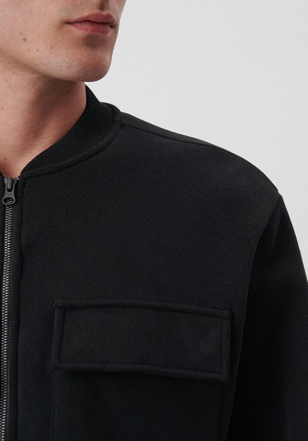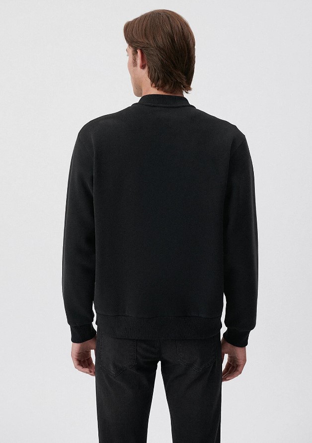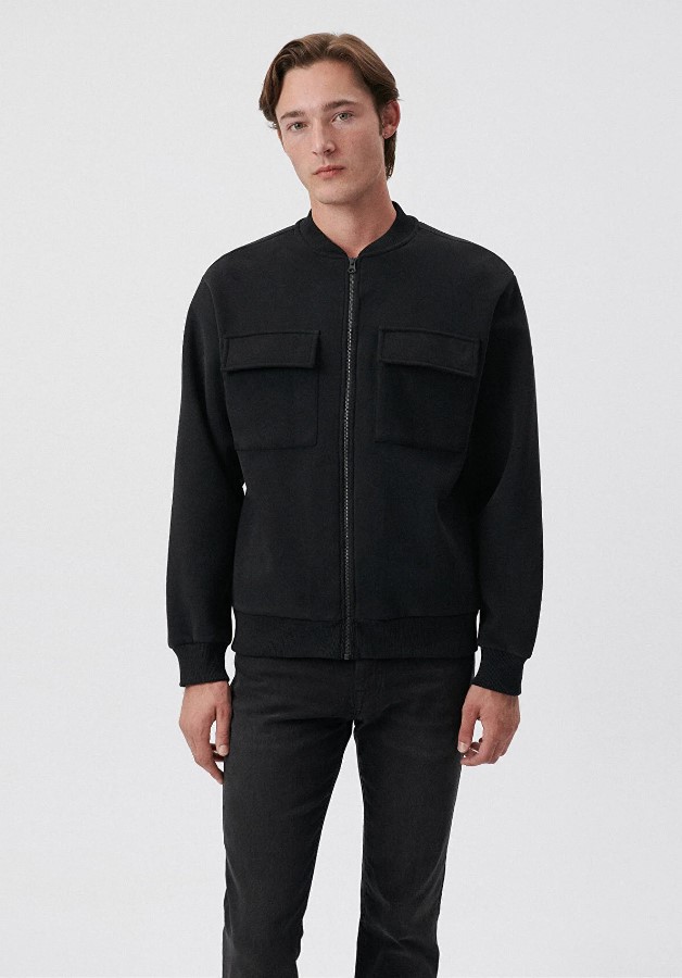 Fermuarlı Triko Regüler Kesim Siyah Ceket