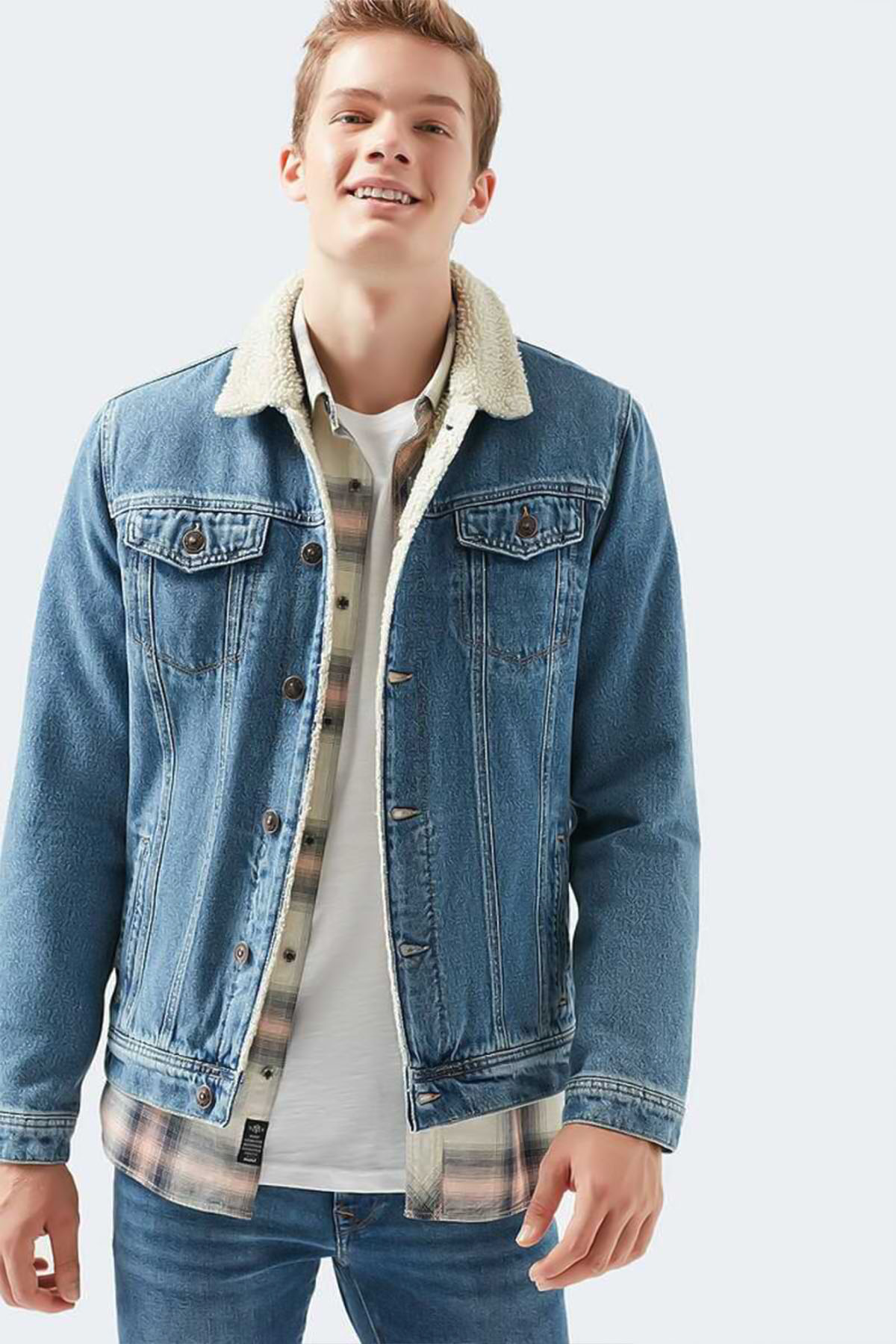 Frank Smoke Sherpa İçi Kürklü Kot Jean Ceket