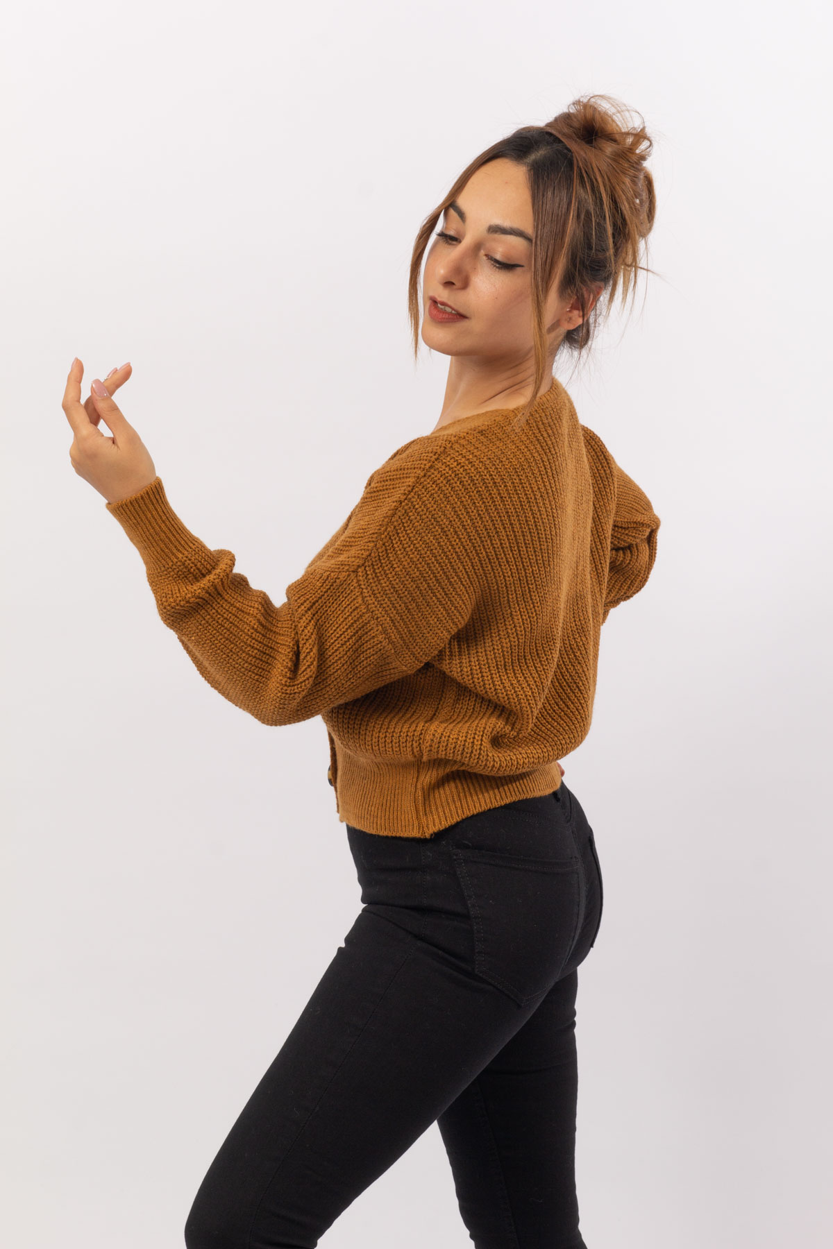 Hardal Renk Yumoş Çiçek Desenli Hırka