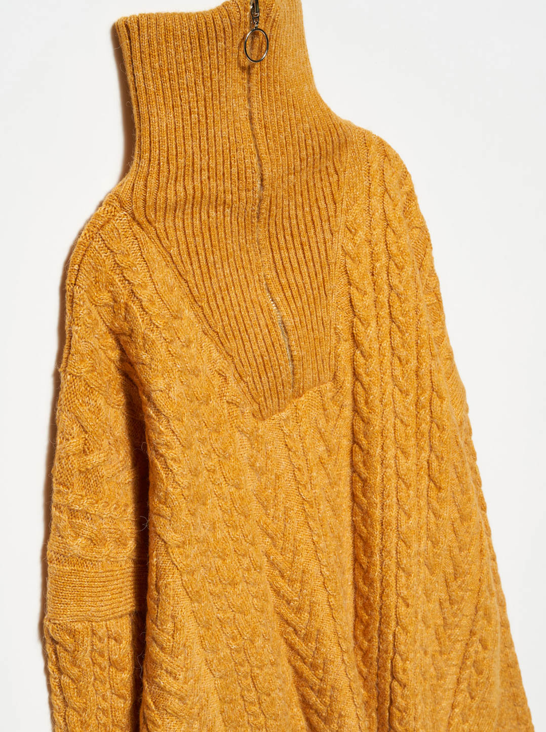 Krem Renk Fermuarlı Saç Örgü Kamyoner Yaka Kazak