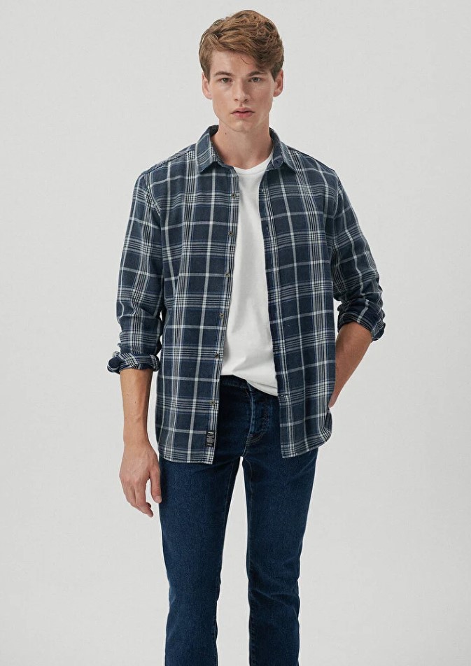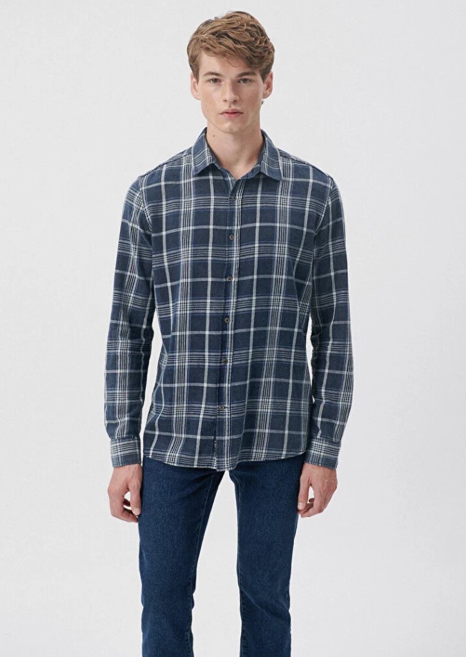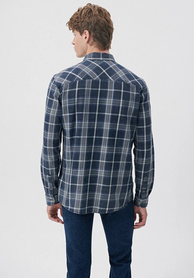 İNDİGO KARELİ SLİM PAMUK GÖMLEK