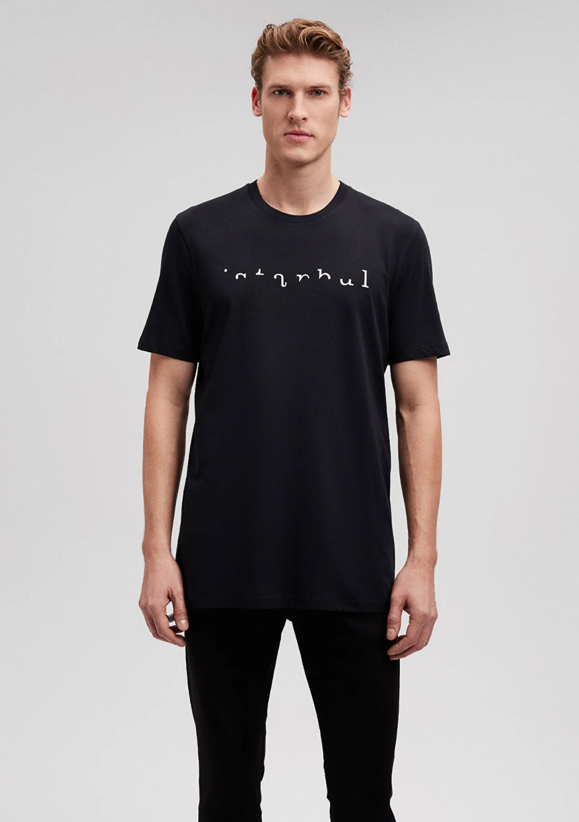 İSTANBUL BASKILI SİYAH REGULAR FİT TİŞÖRT