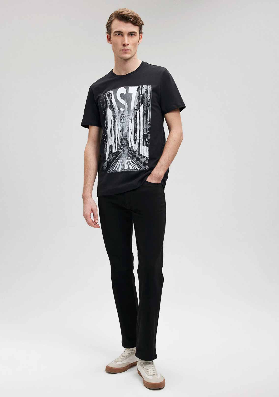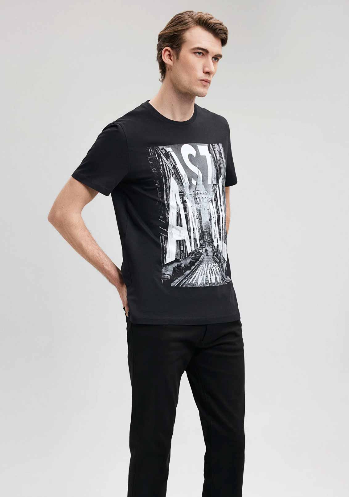 İstanbul Baskılı Siyah Regular Fit Tişört