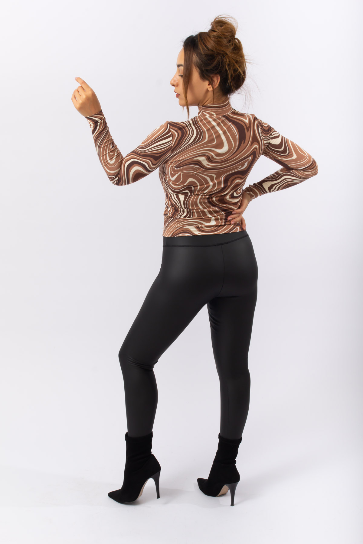 KAHVE KREM RENK YARIM BALIKÇI LİKRALI BLUZ