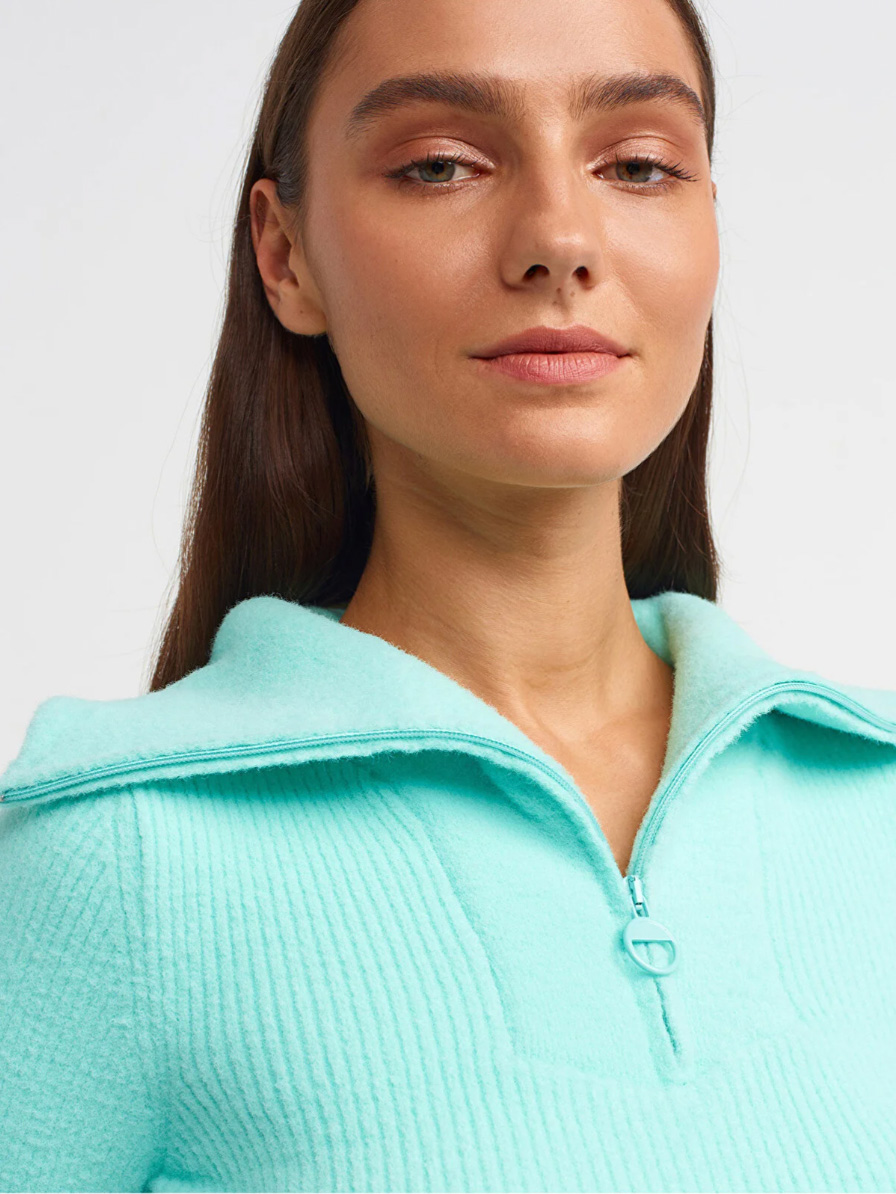 Krem Renk Fermuarlı Saç Örgü Kamyoner Yaka Kazak