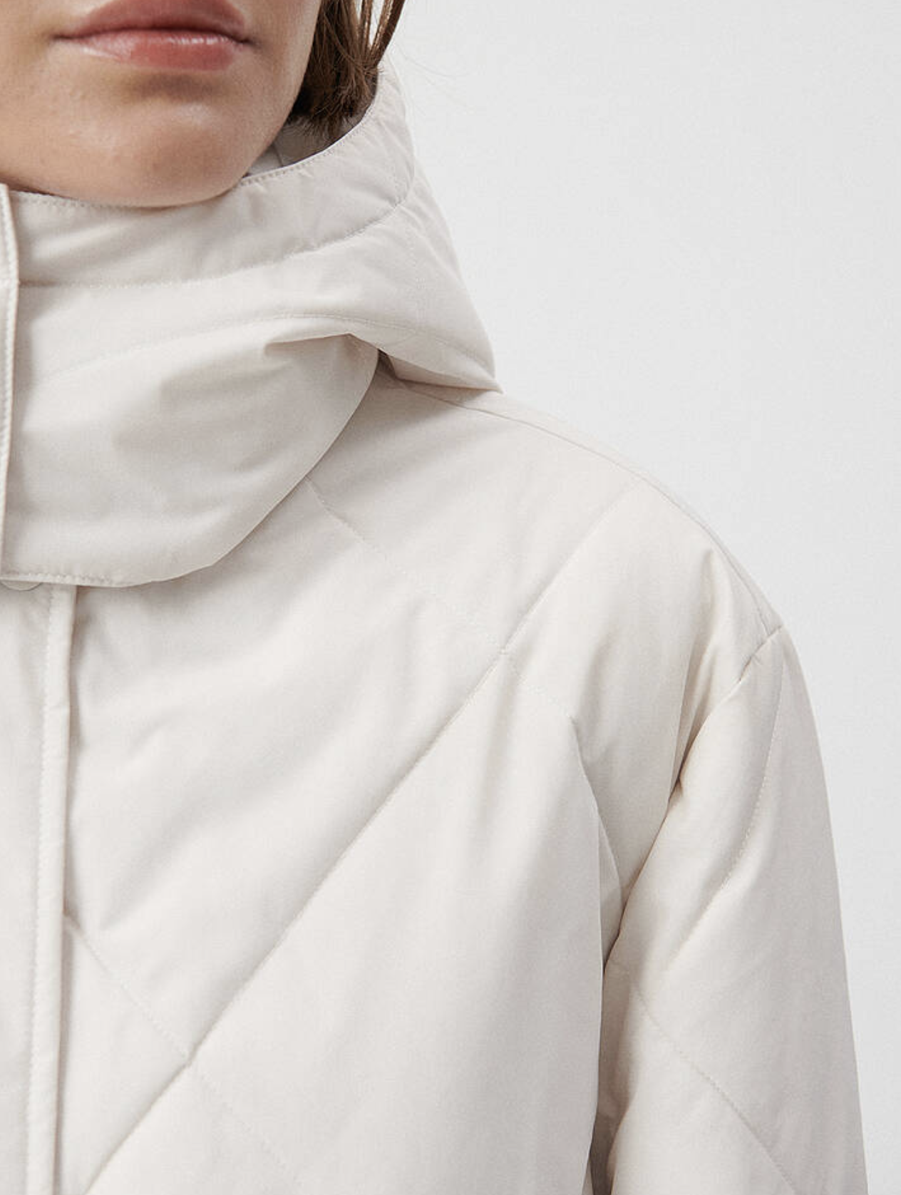 Kapüşonlu Toz Beyaz Şişme Mont