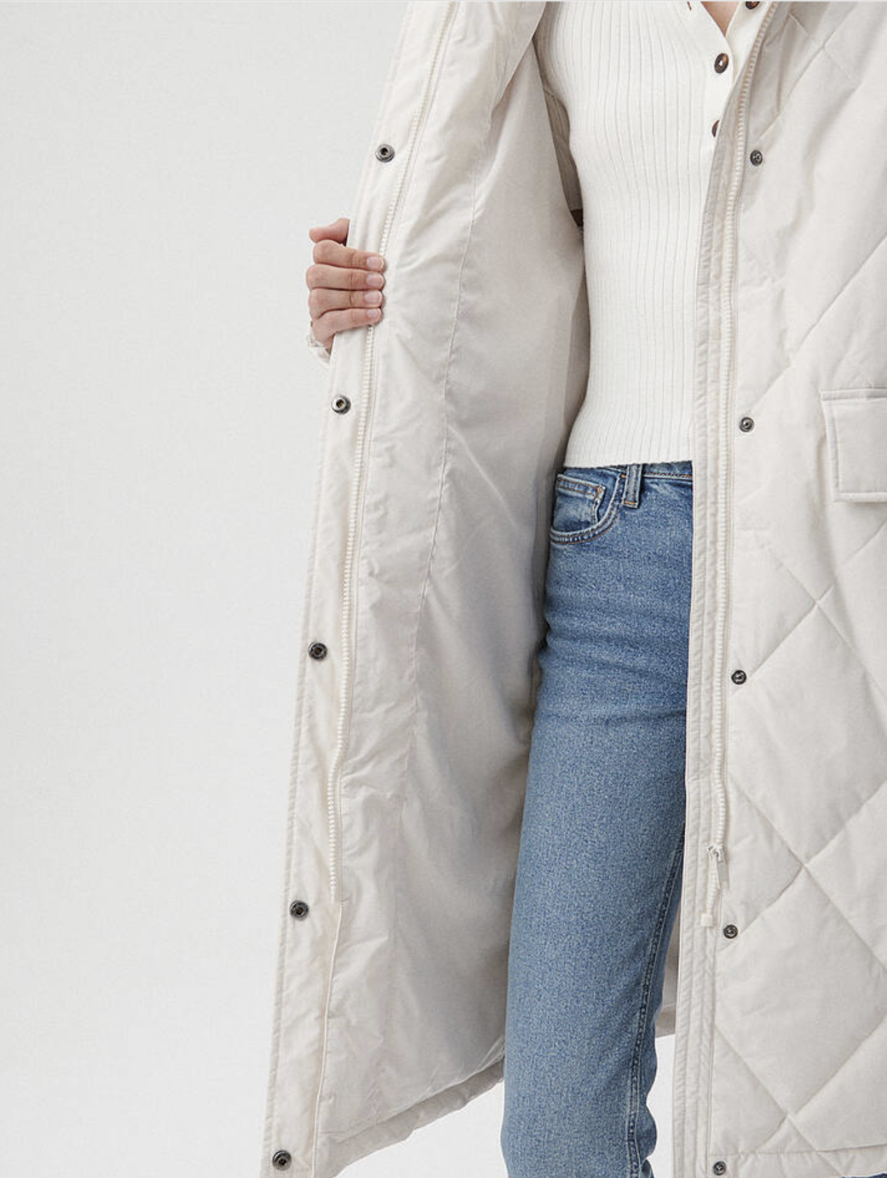 KAPİTONE BEJ UZUN LOOSE FİT MONT