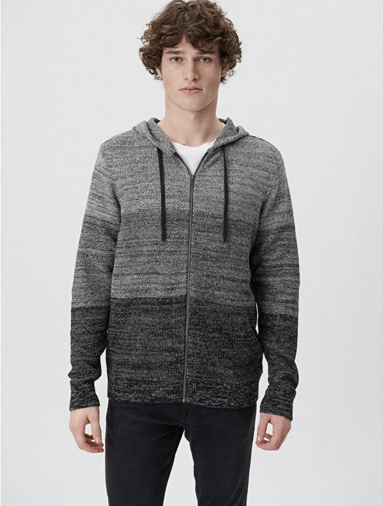 KAPÜŞONLU BLOK RENKLİ SİYAH VE GRİ HIRKA