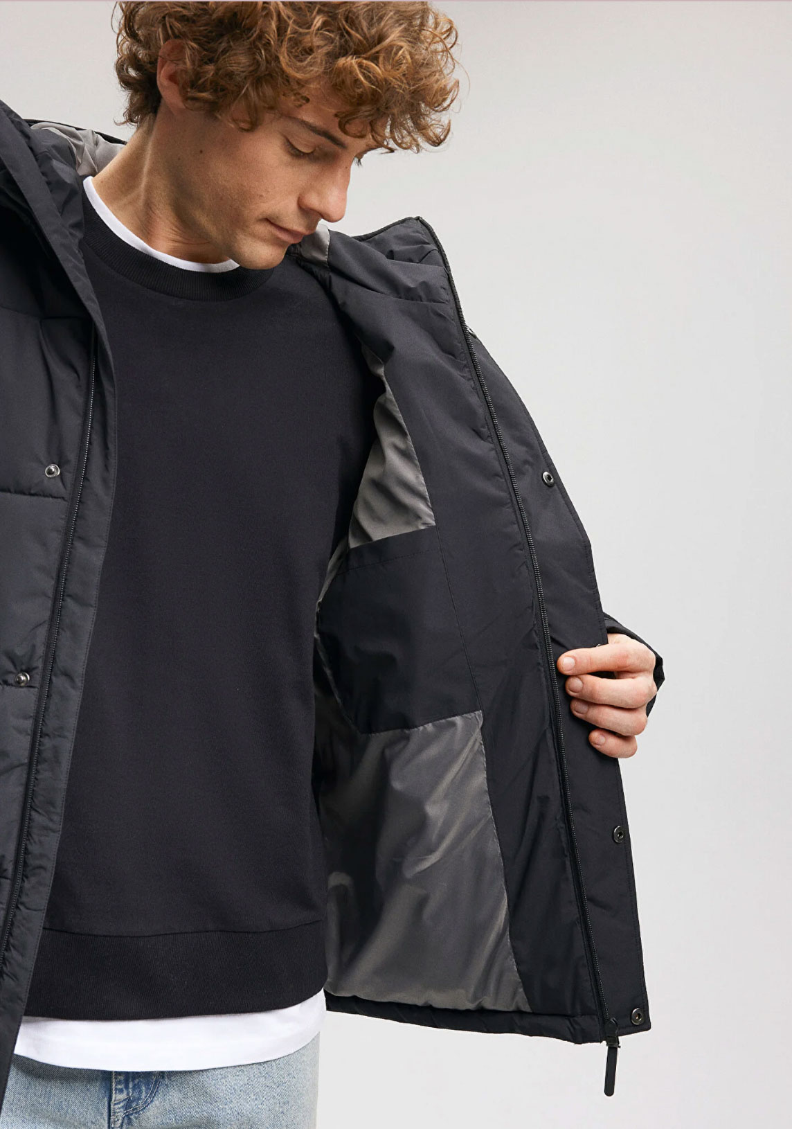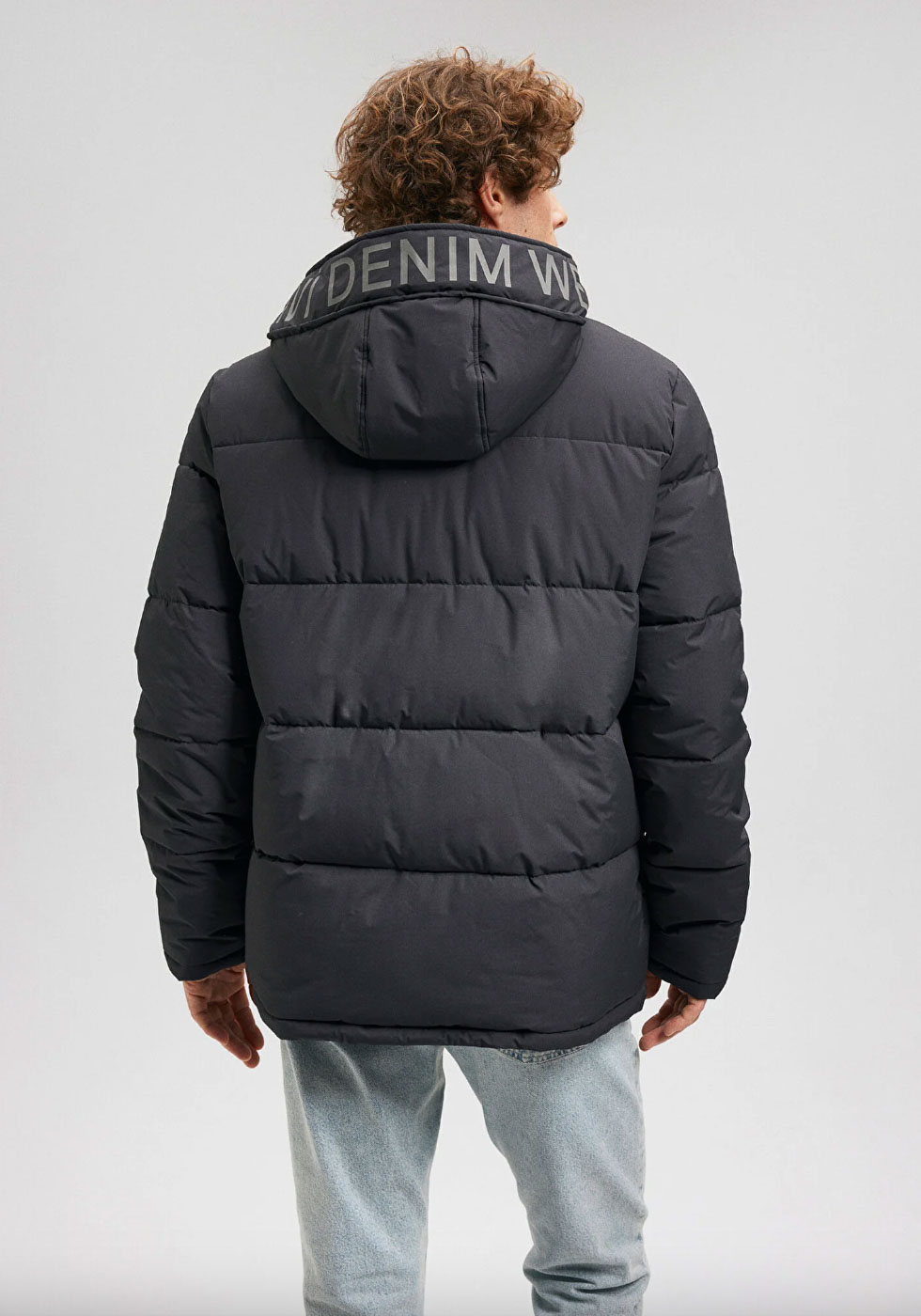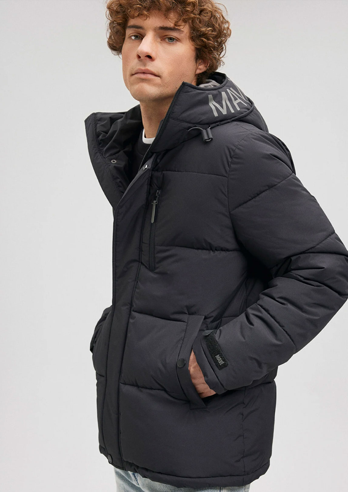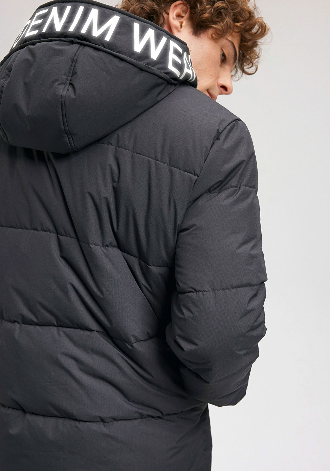 KAPÜŞONLU SİYAH ŞİŞME REGULAR KESİM MONT