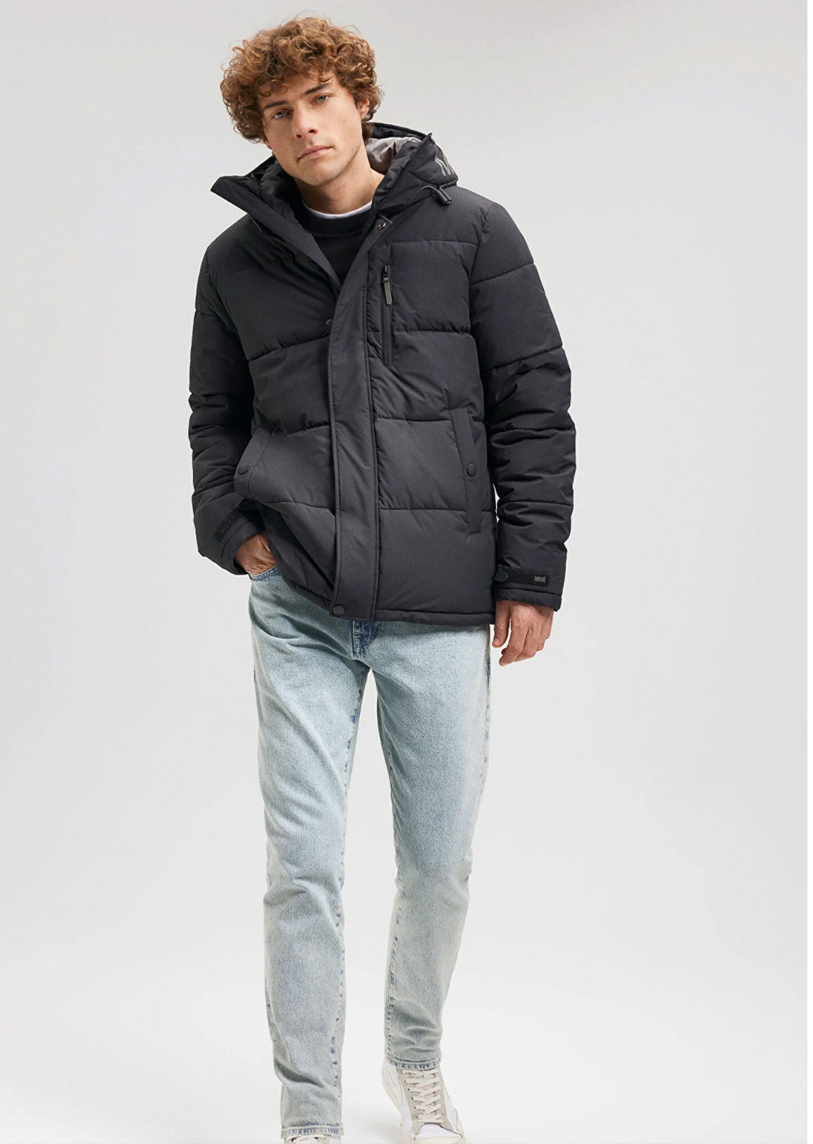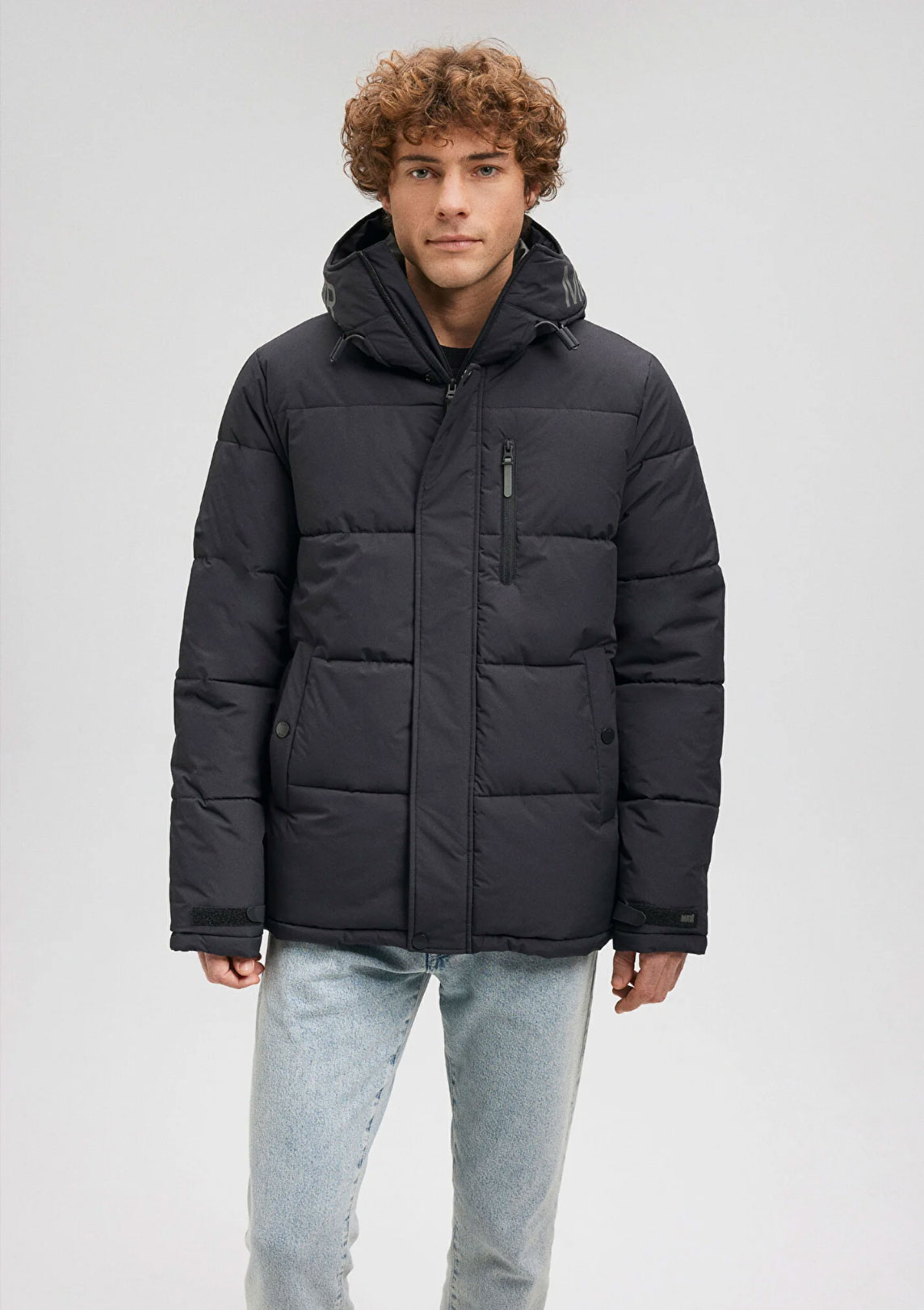 Kapüşonlu Siyah Şişme Regüler Fit Mont