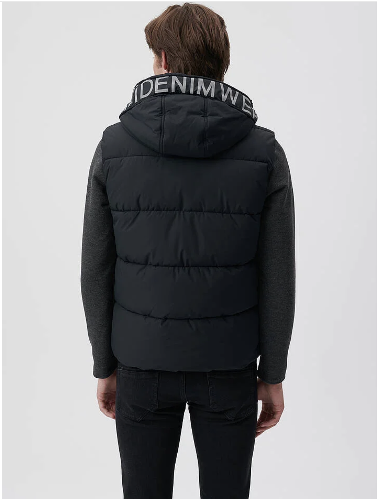 Siyah Kapüşonlu Regüler Kesim Şişme Yelek