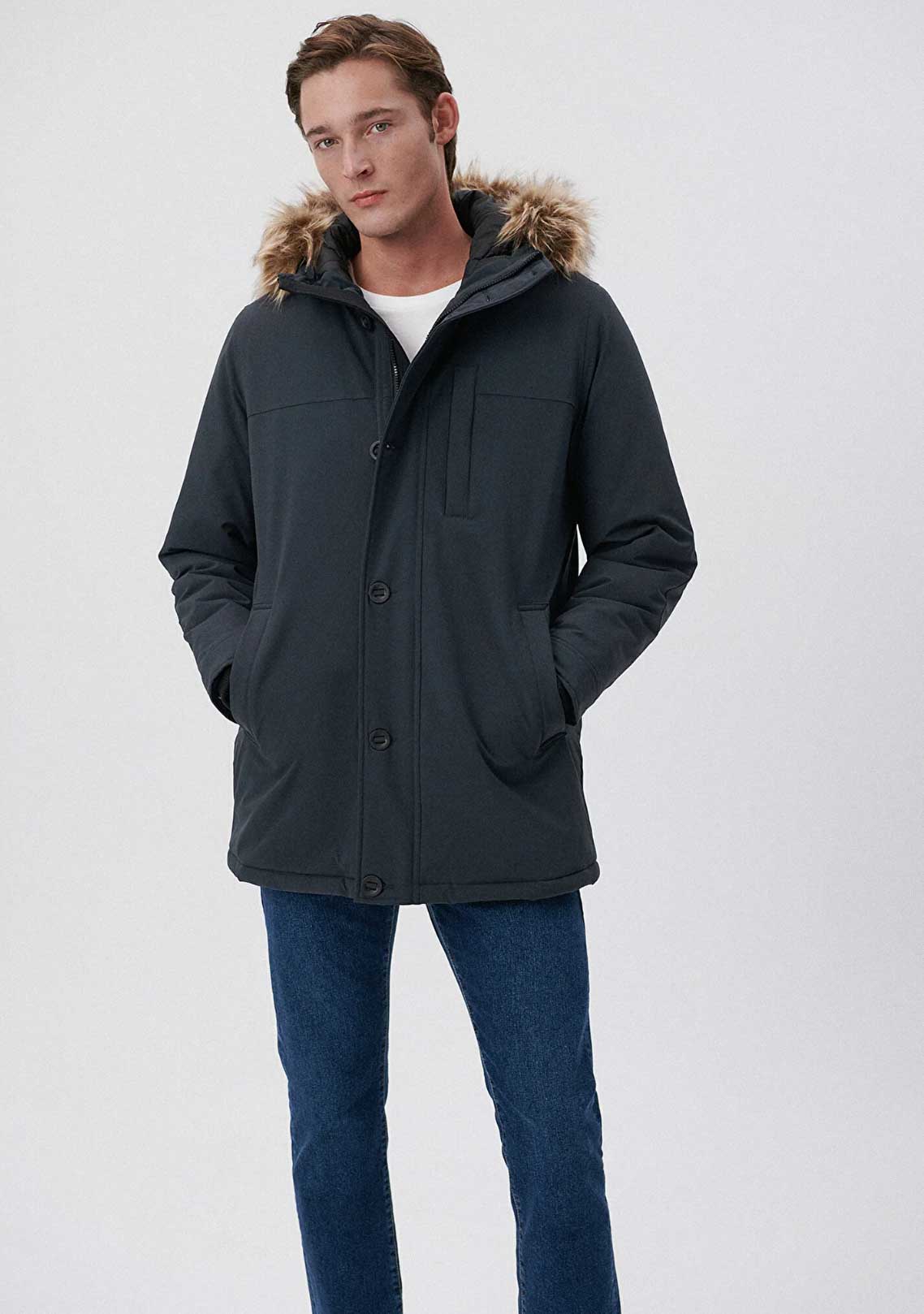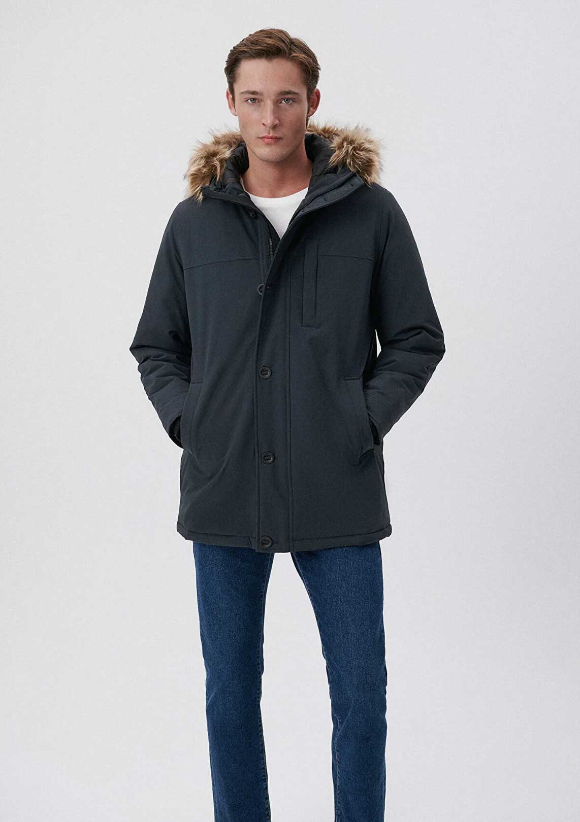 KAPÜŞONU KÜRKLÜ FÜME GRİ REGÜLER FİT PARKA