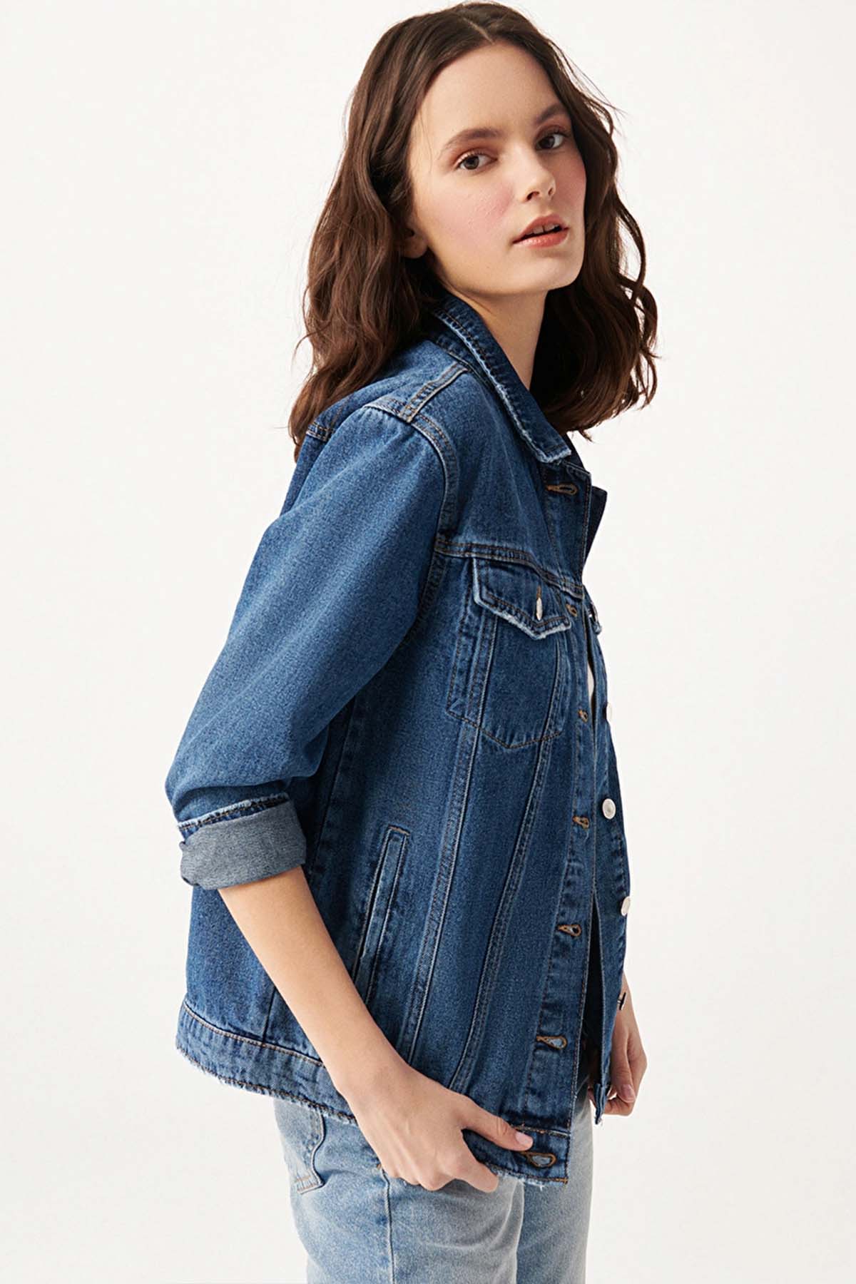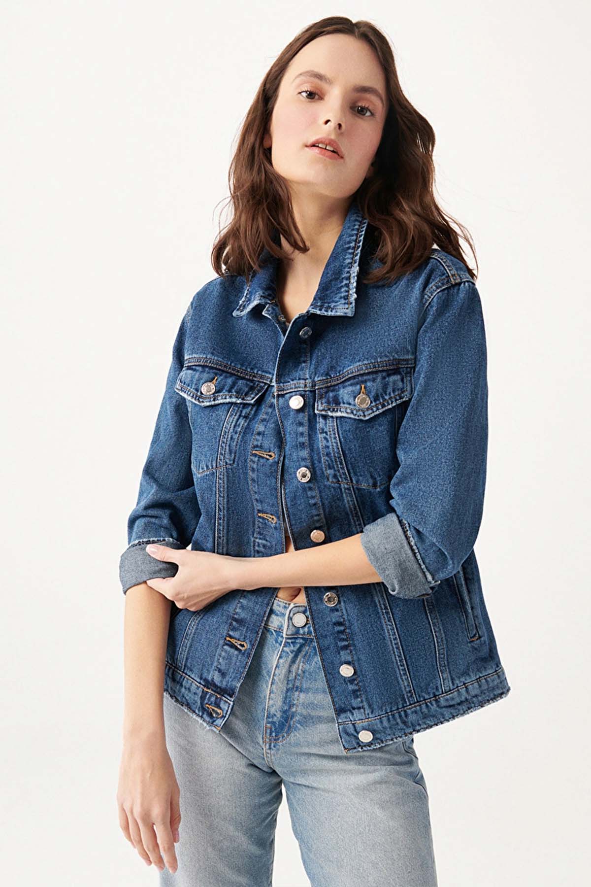 KARLA DARK GOLD ICON KOYU MAVİ JEAN CEKET