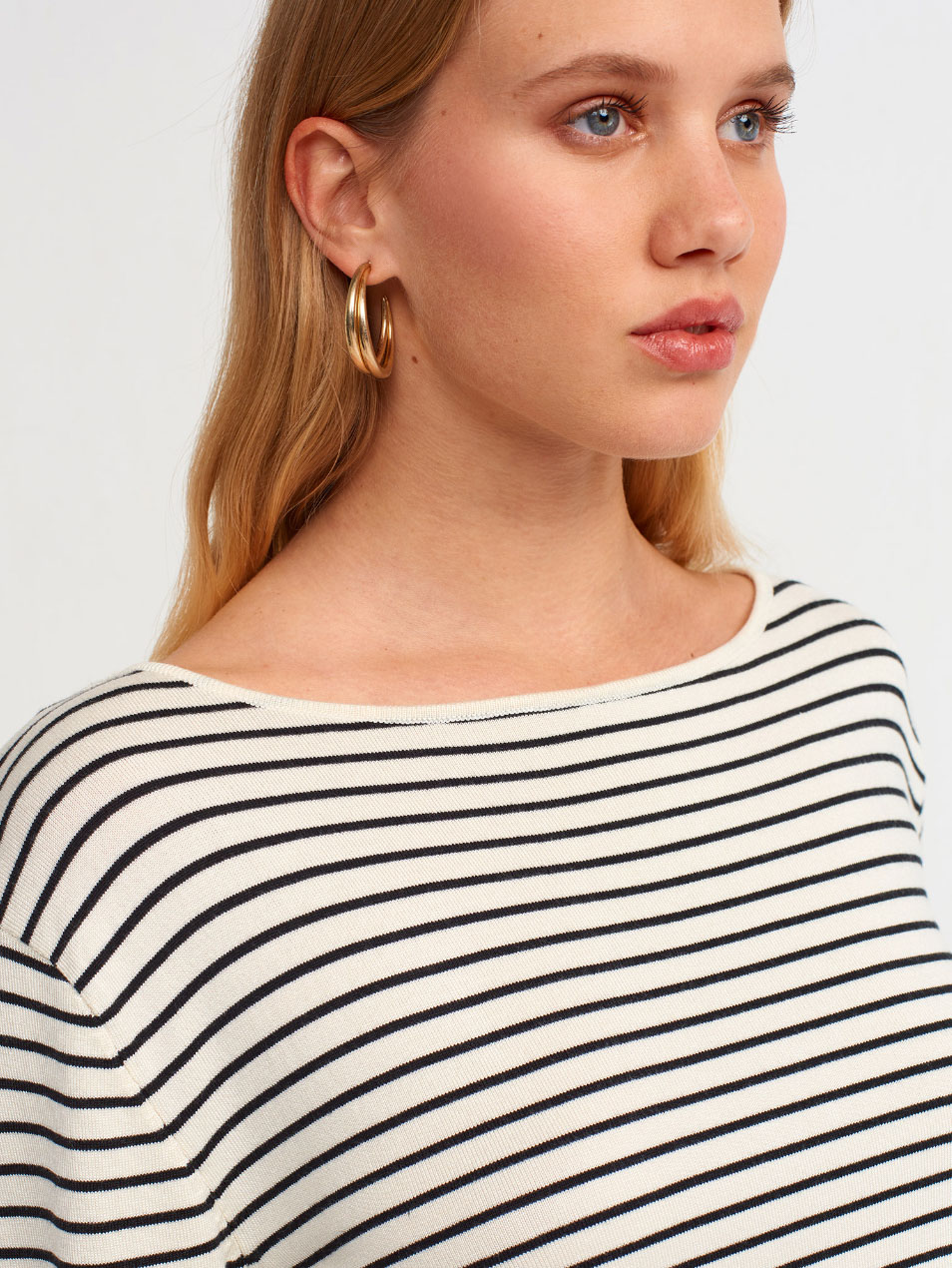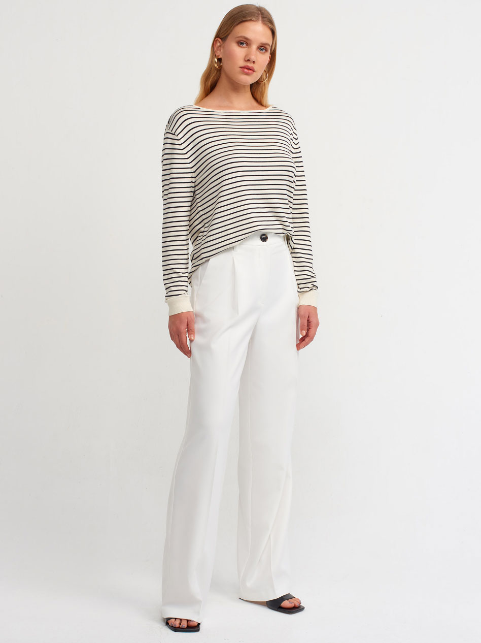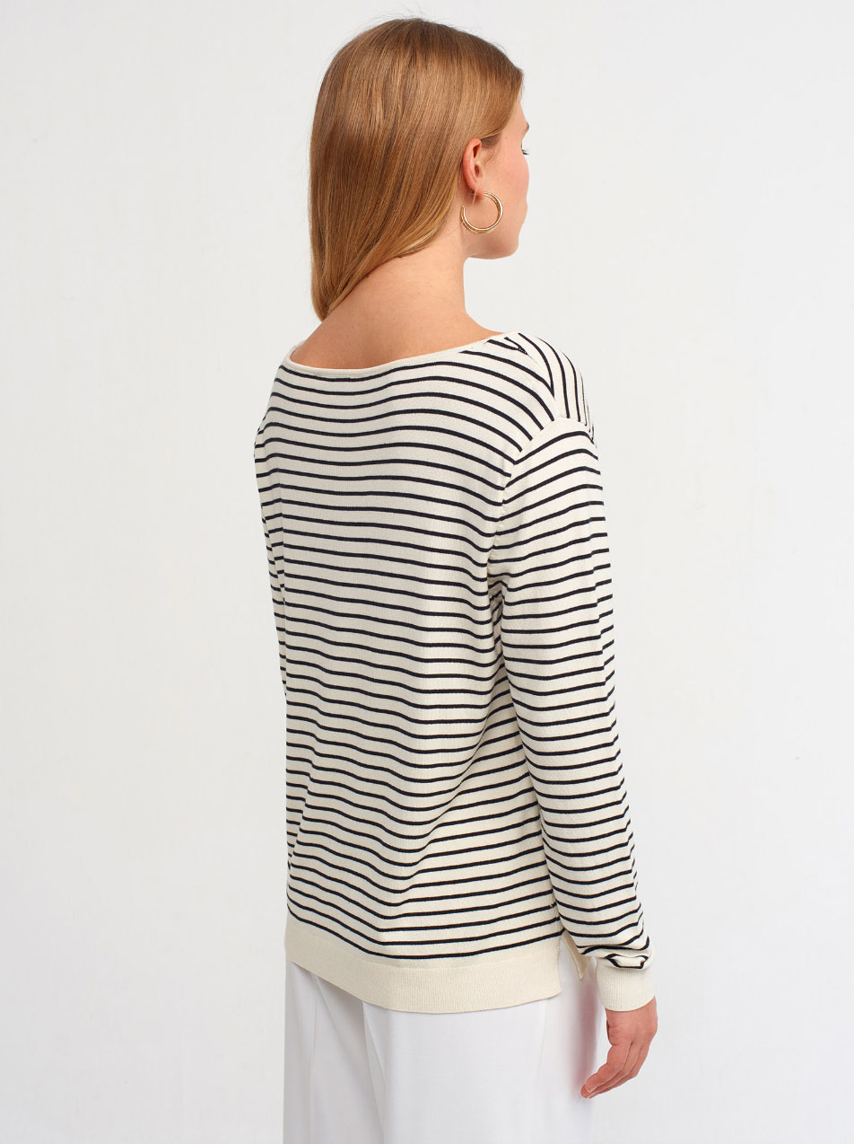 Kayık Yaka Yırtmaçlı Çizgili Renk Standart Kazak