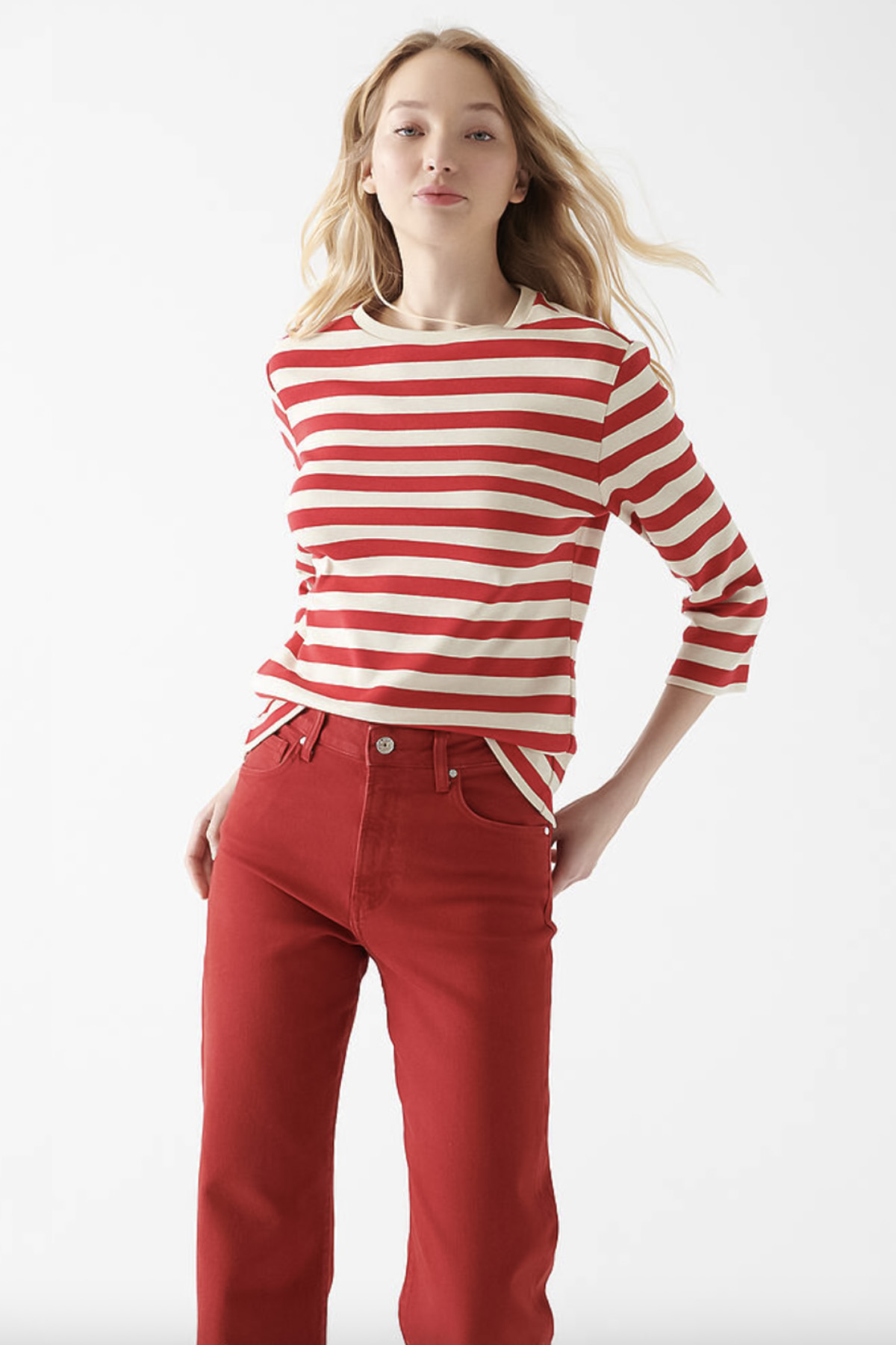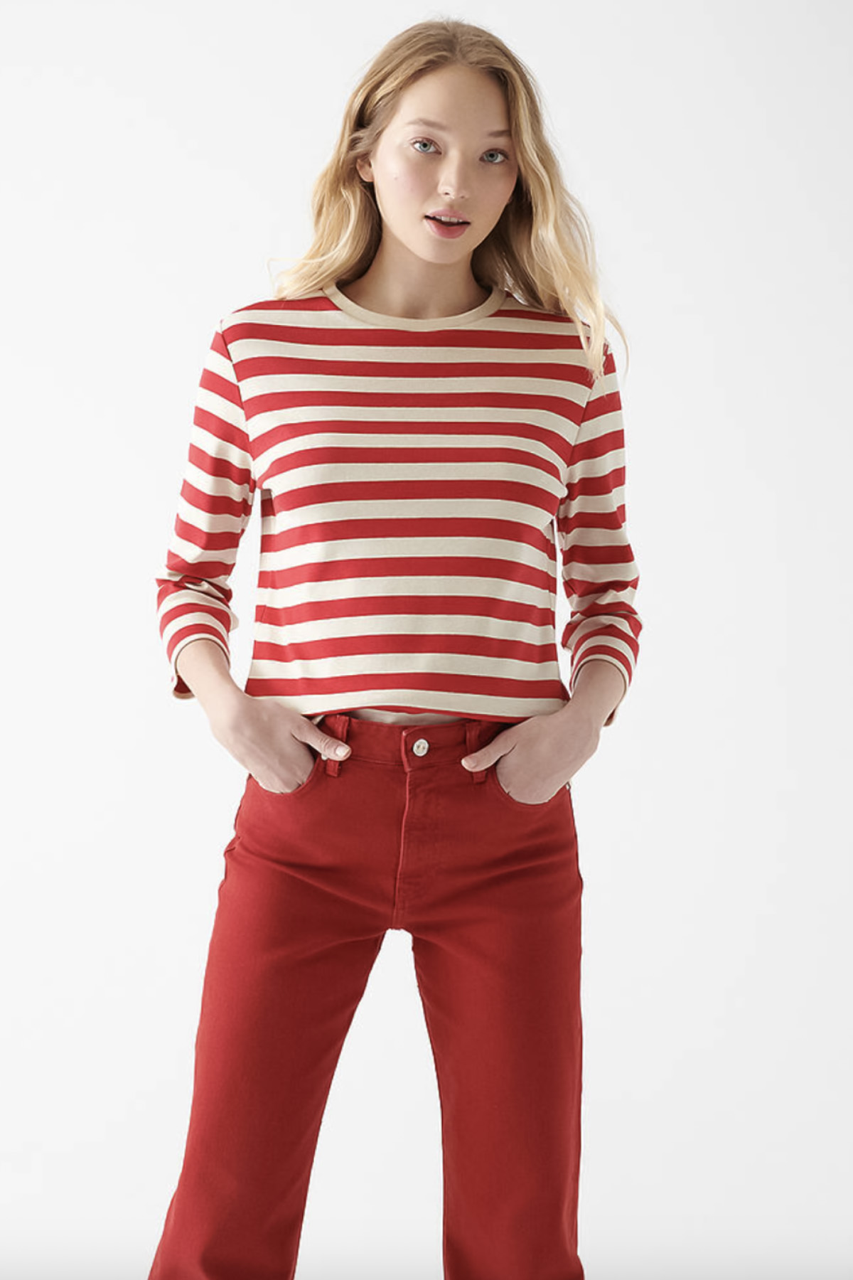 KIRMIZI ÇİZGİLİ BASİC BLUZ