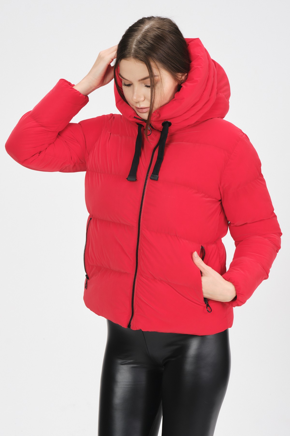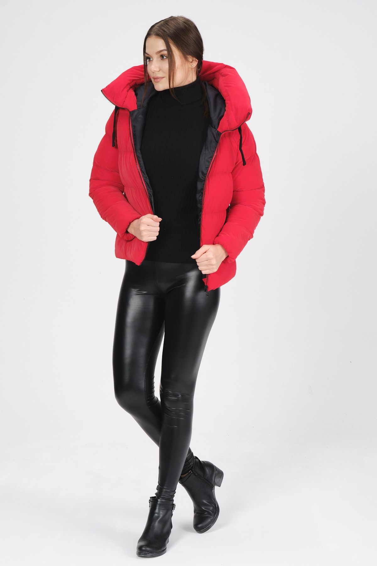 KIRMIZI RENK KAPÜŞONLU SLİM ŞİŞME MONT