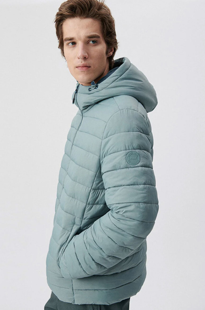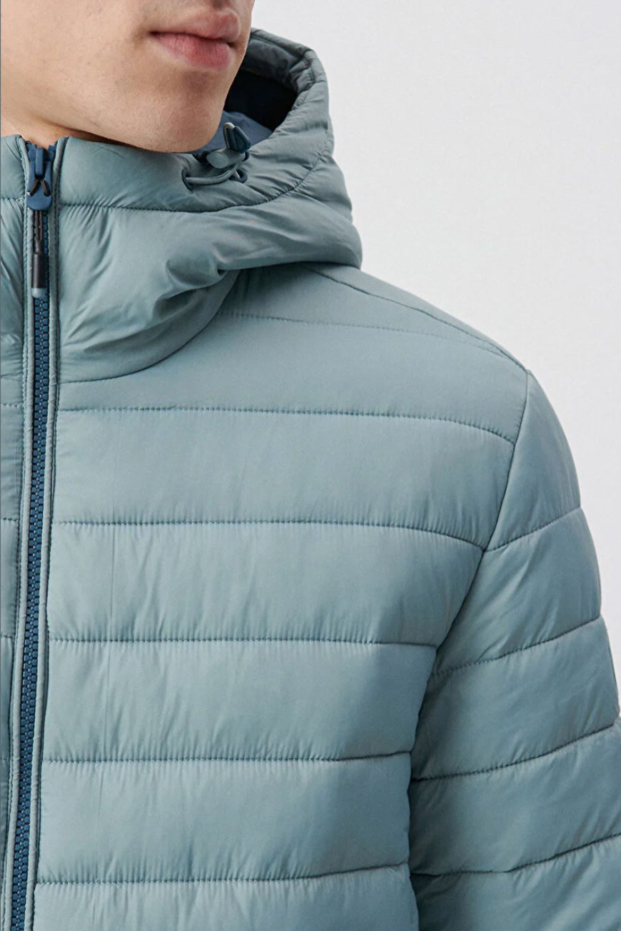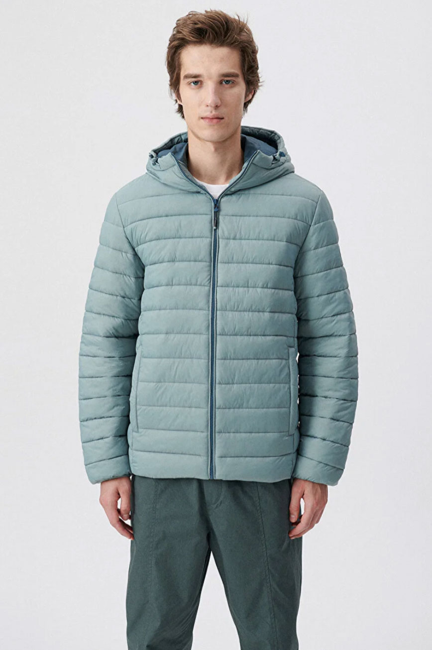 Kapüşonlu Yeşil Şişme Regular Kesim Mont