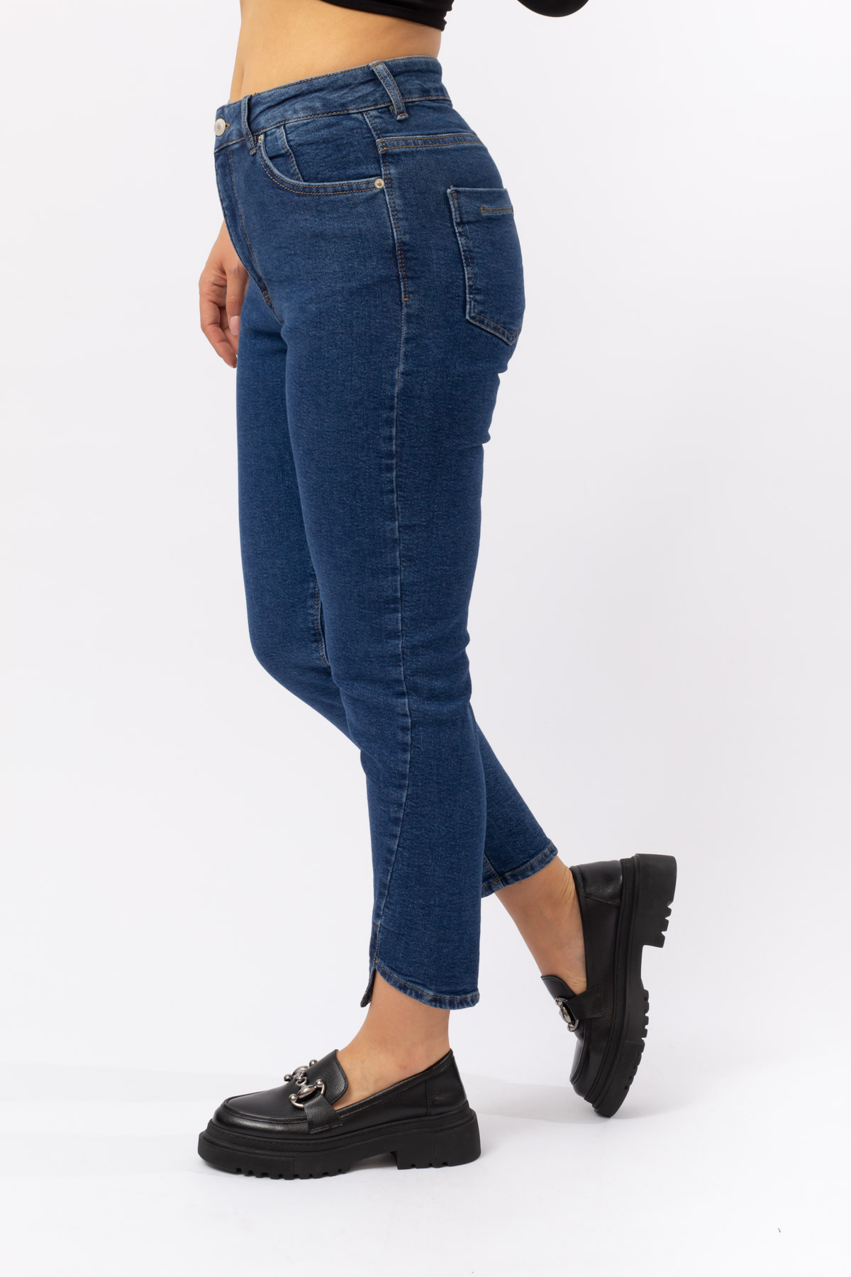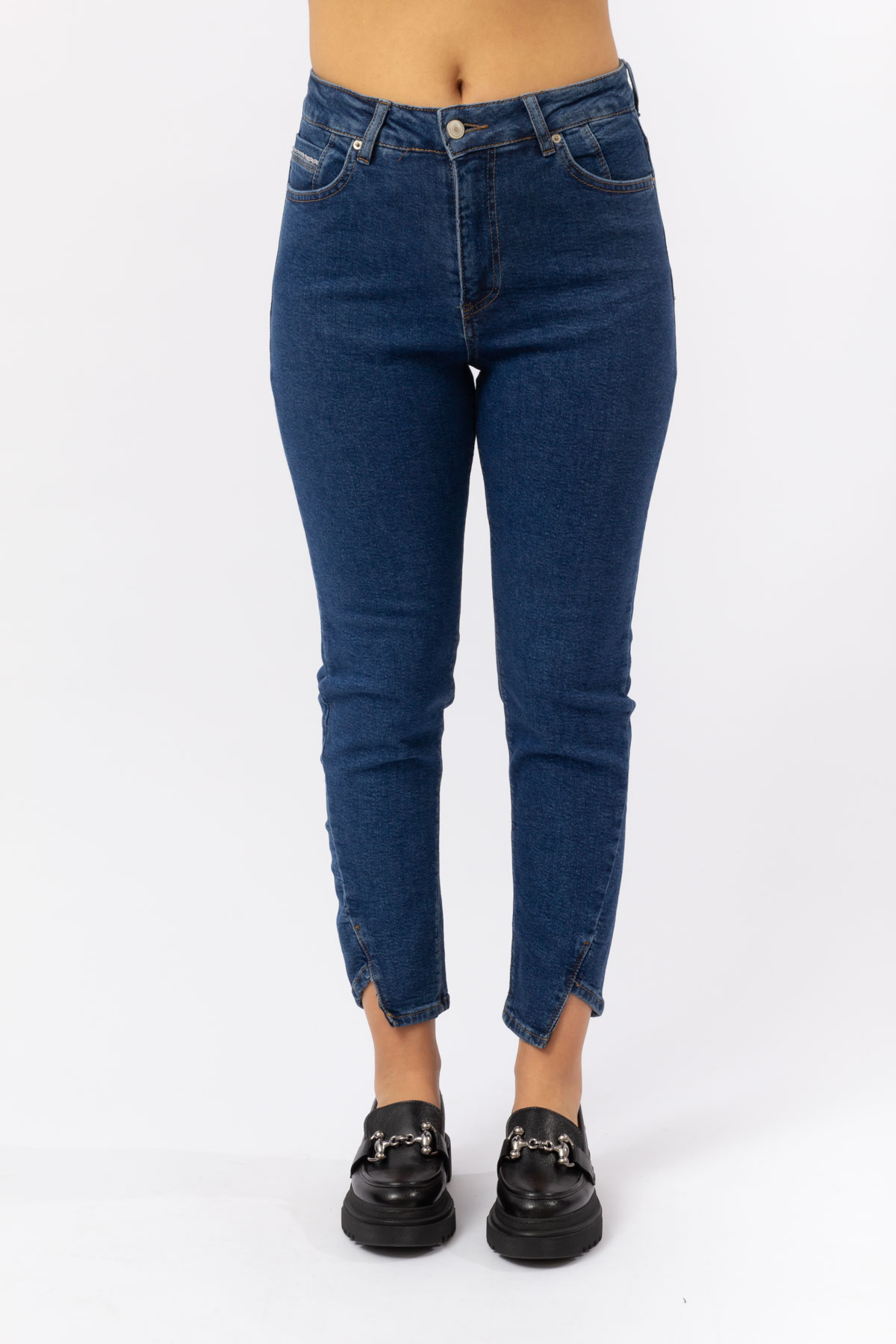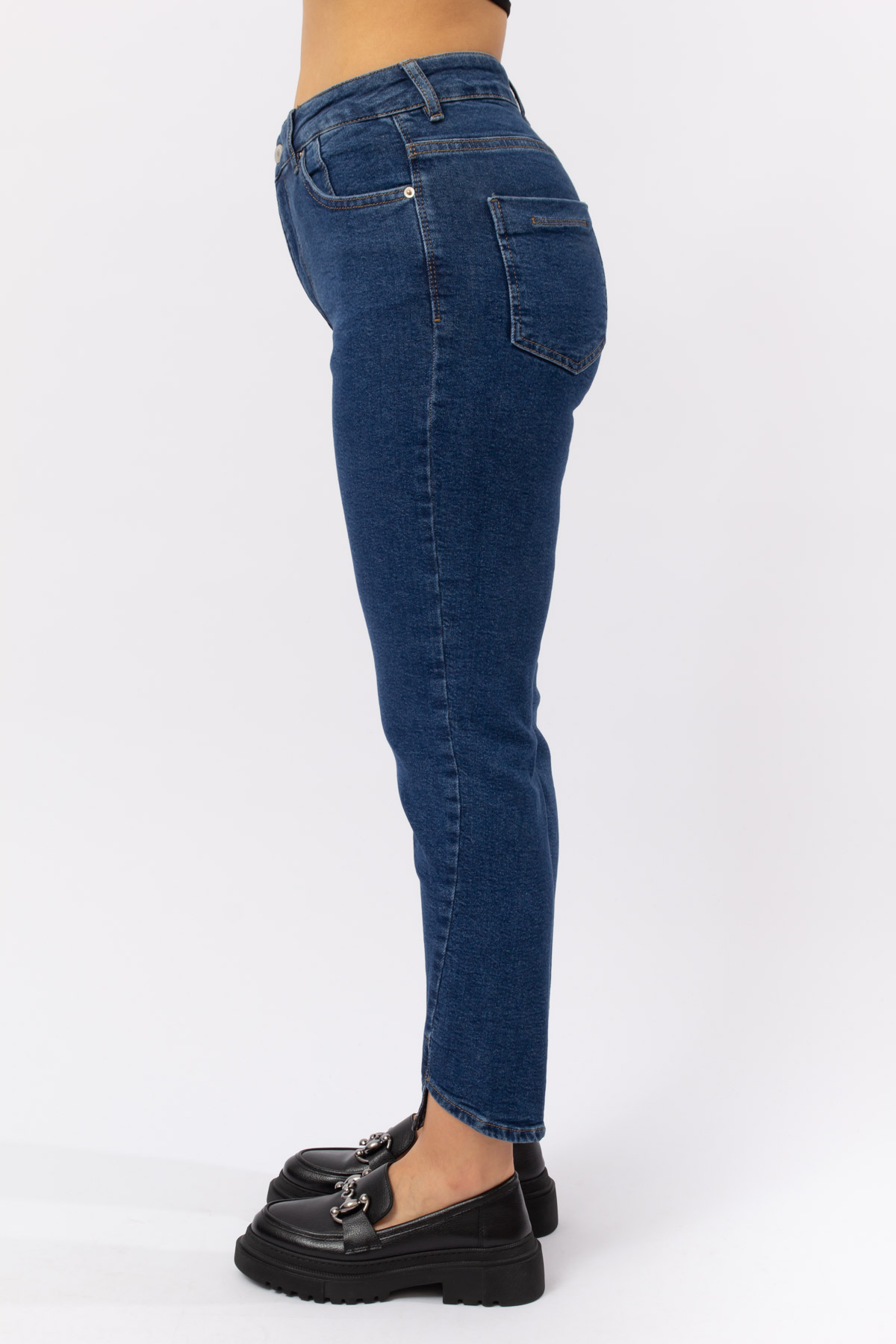 LACİVERT DENİM PAÇA DETAY LİKRALI MUM JEANS