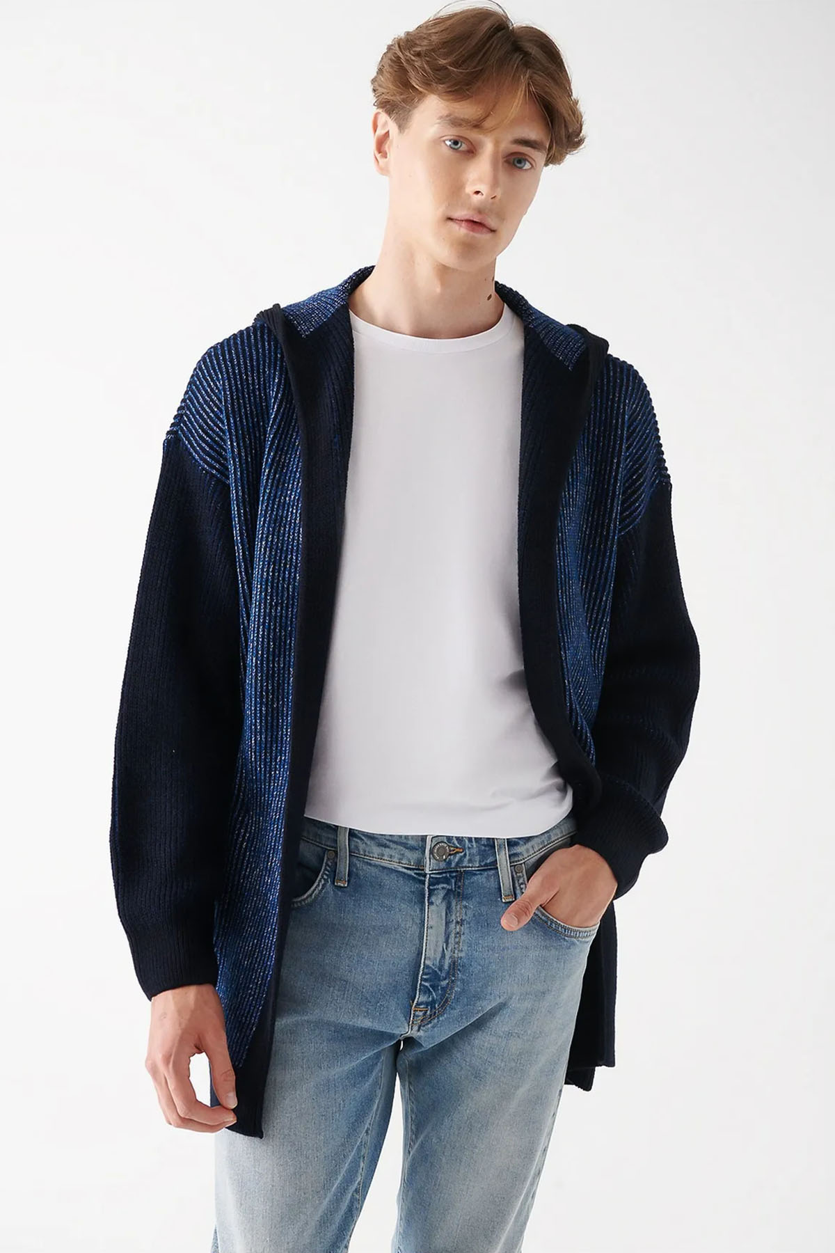 LACİVERT KAPÜŞONLU TRİKO HIRKA