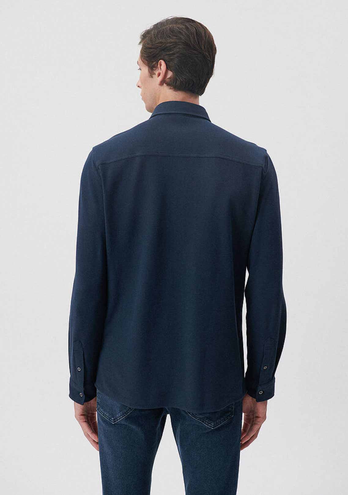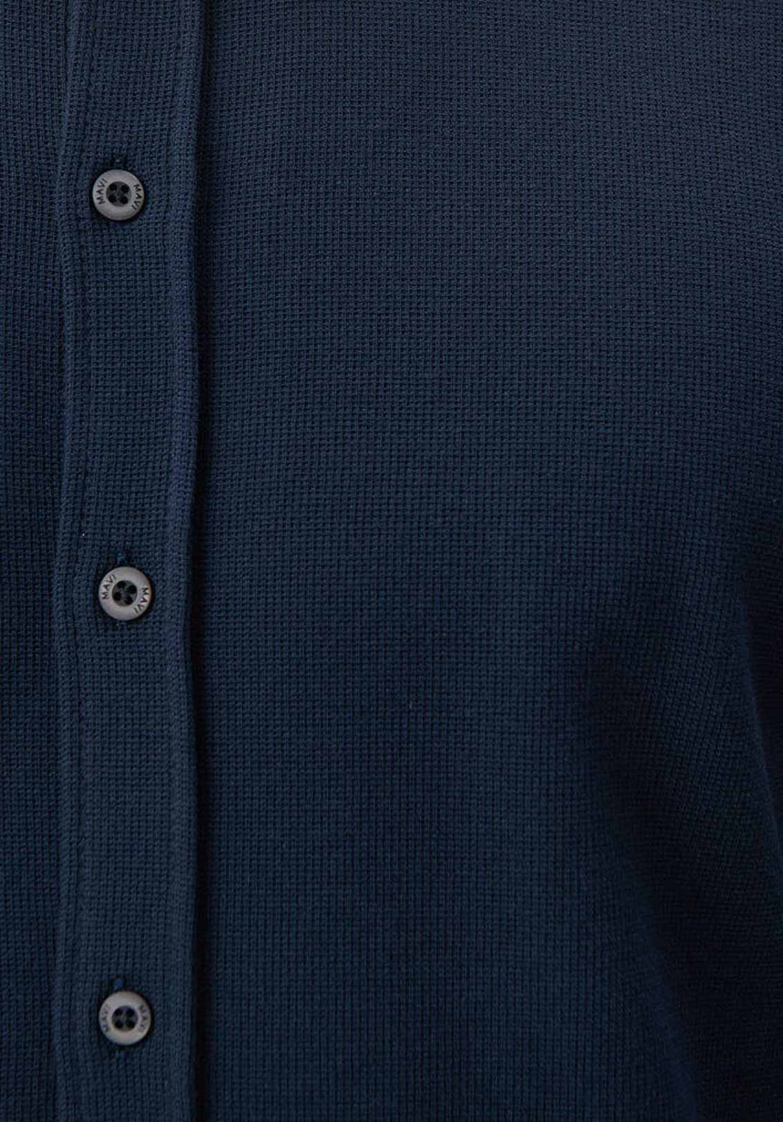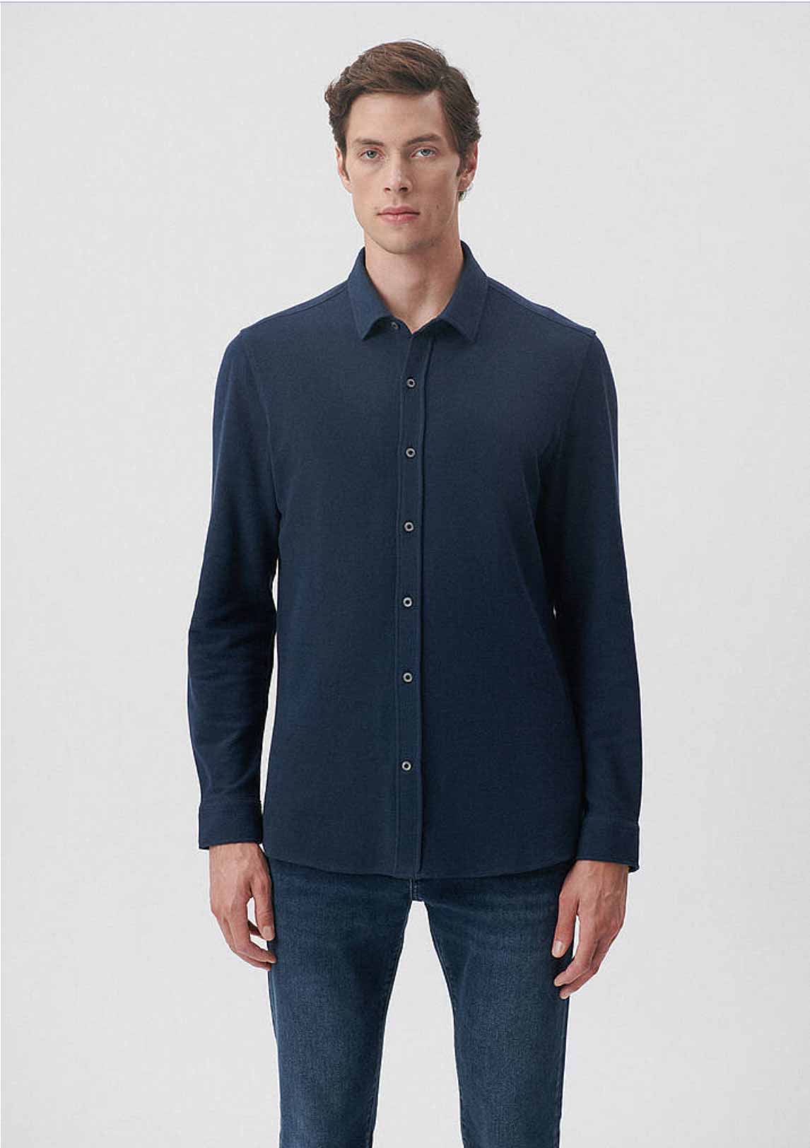 Lacivert Örme Fit Kesim Metal Düğmeli Gömlek