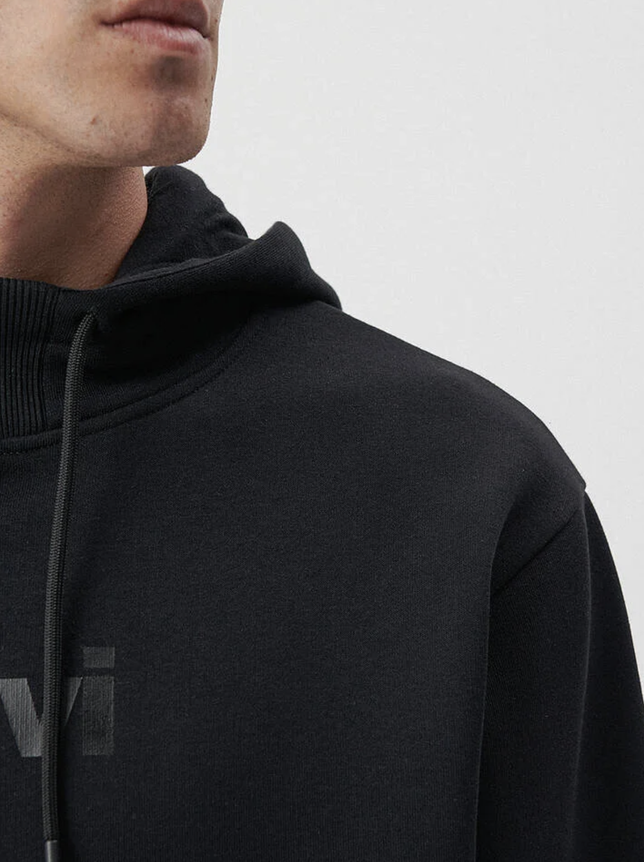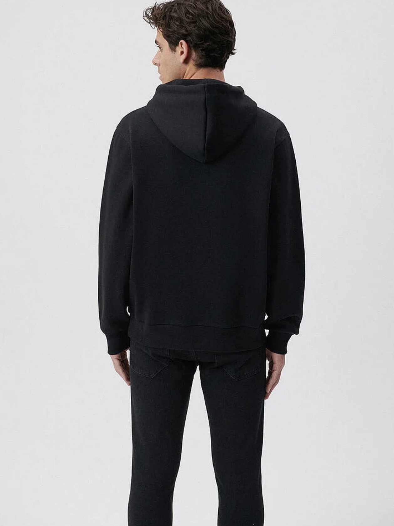 MAVİ BASKILI KAPÜŞONLU LOOSE FİT SİYAH SWEATSHİRT