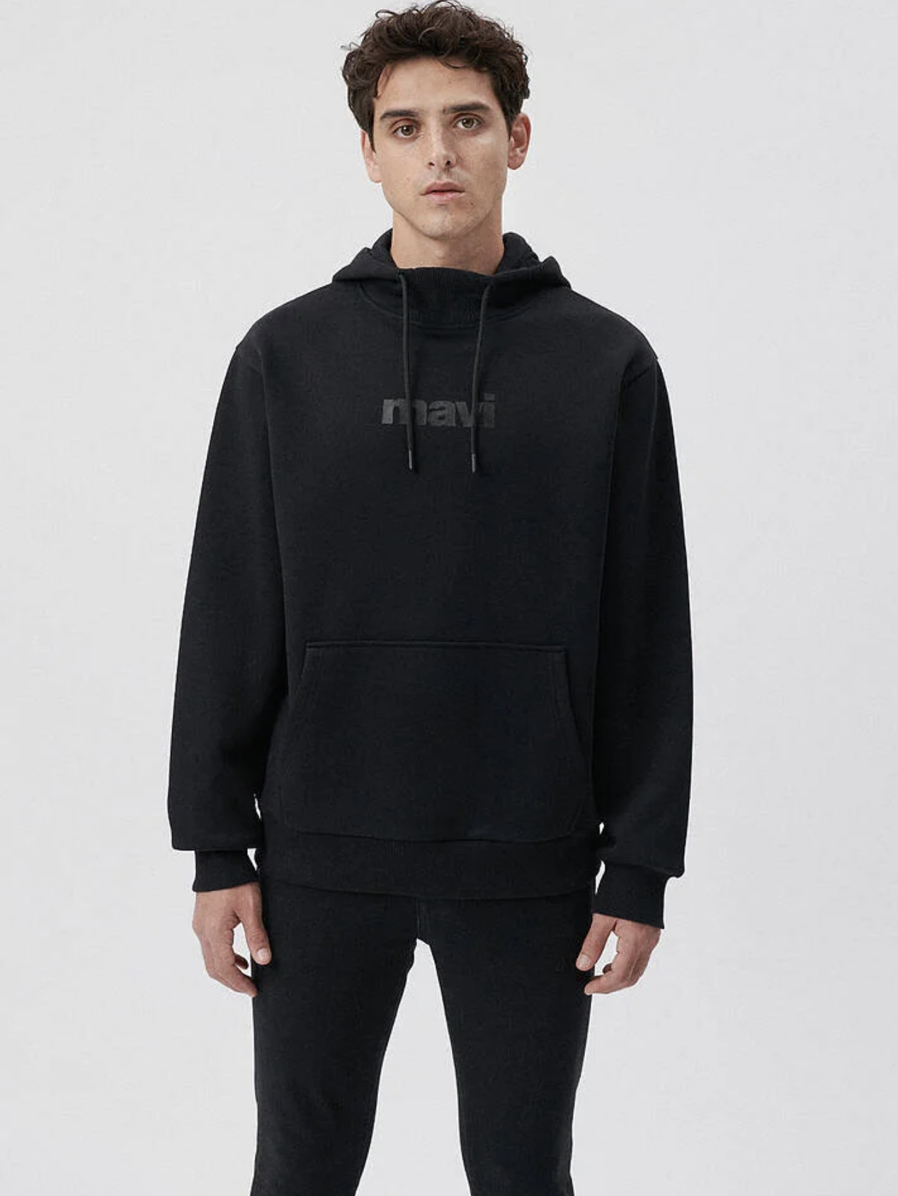 Mavi Logo Baskılı Kapüşonlu Regüler Fit Siyah Sweatshirt