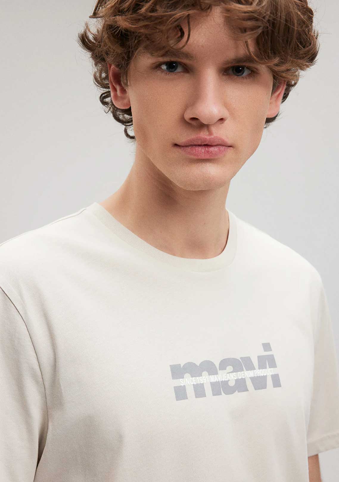 Mavi Logo Baskılı Beyaz Loose Fit Tişört