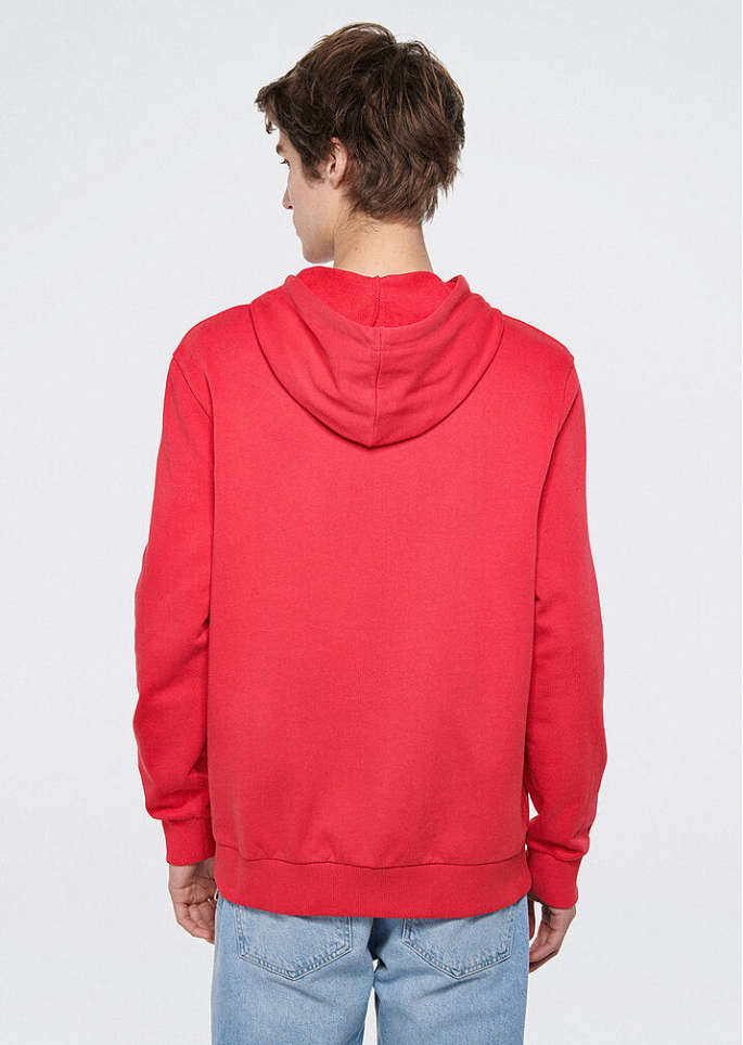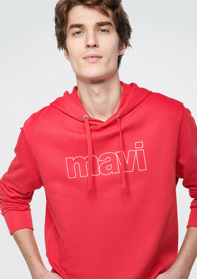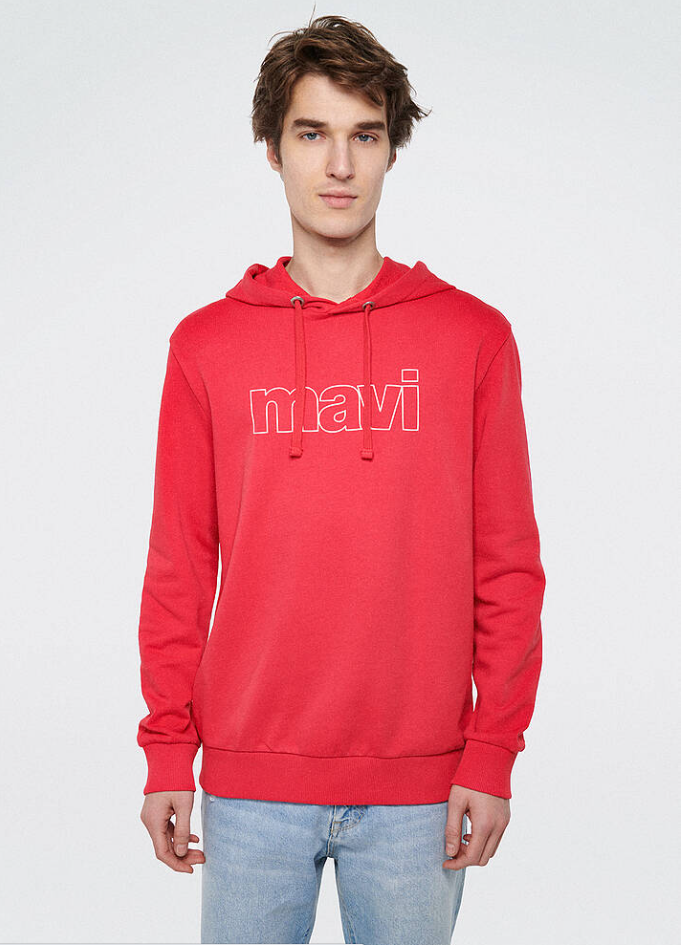 MAVİ LOGO BASKILI KAPÜŞONLU KOYU KIRMIZI SWEATSHİRT