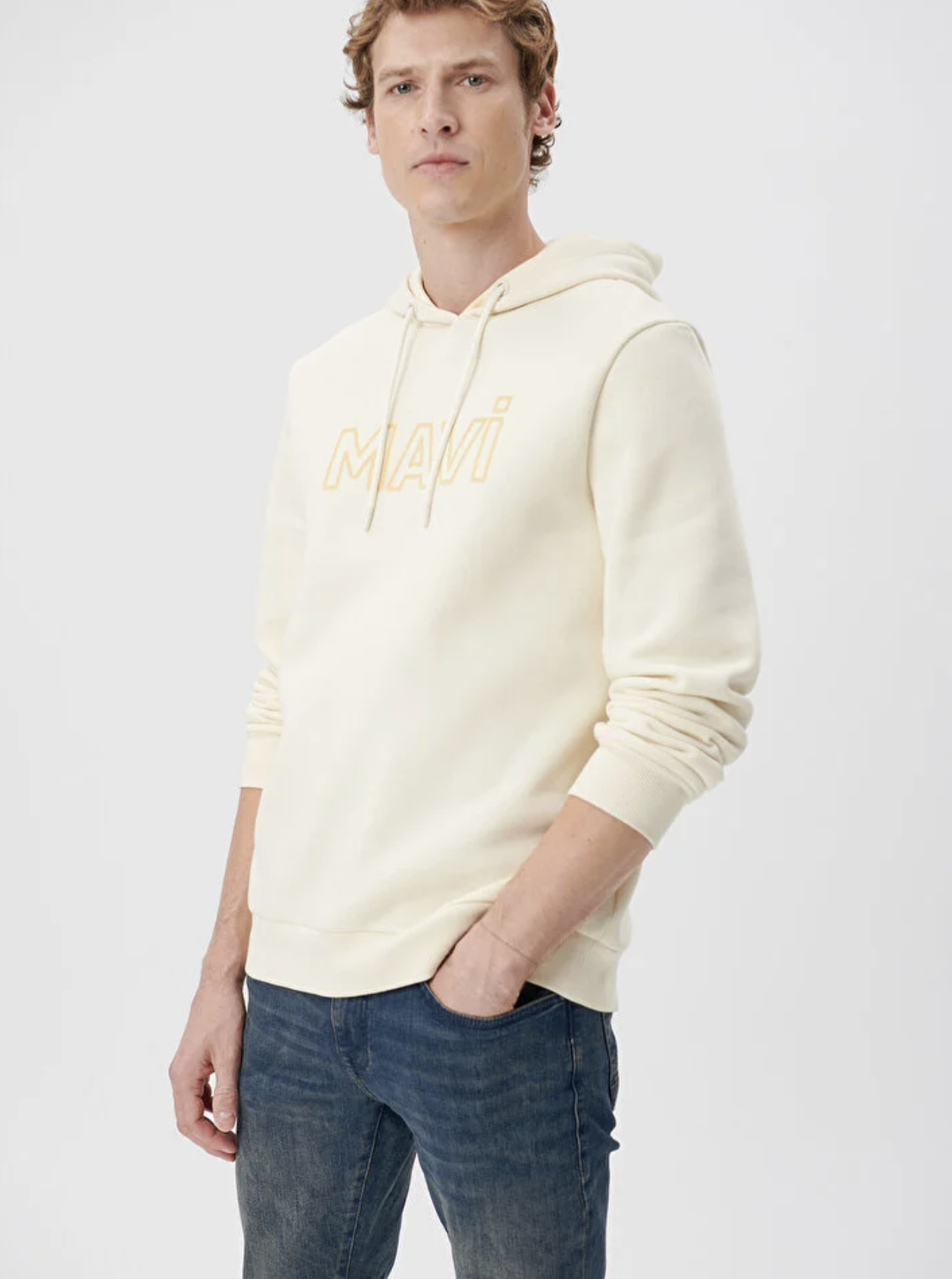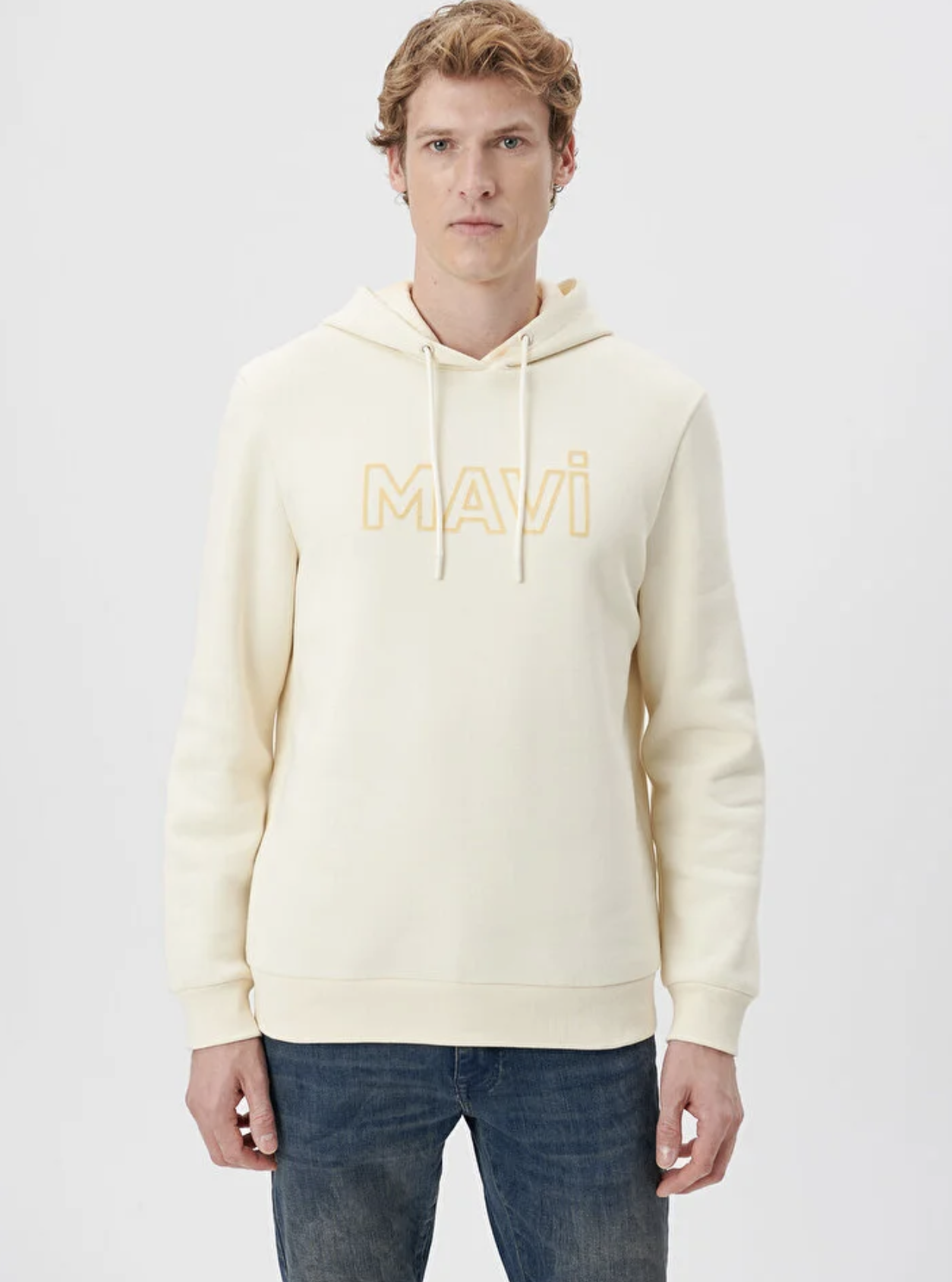 MAVİ LOGO BASKILI KAPÜŞONLU REGÜLER FİT BEJ SWEATSHİRT