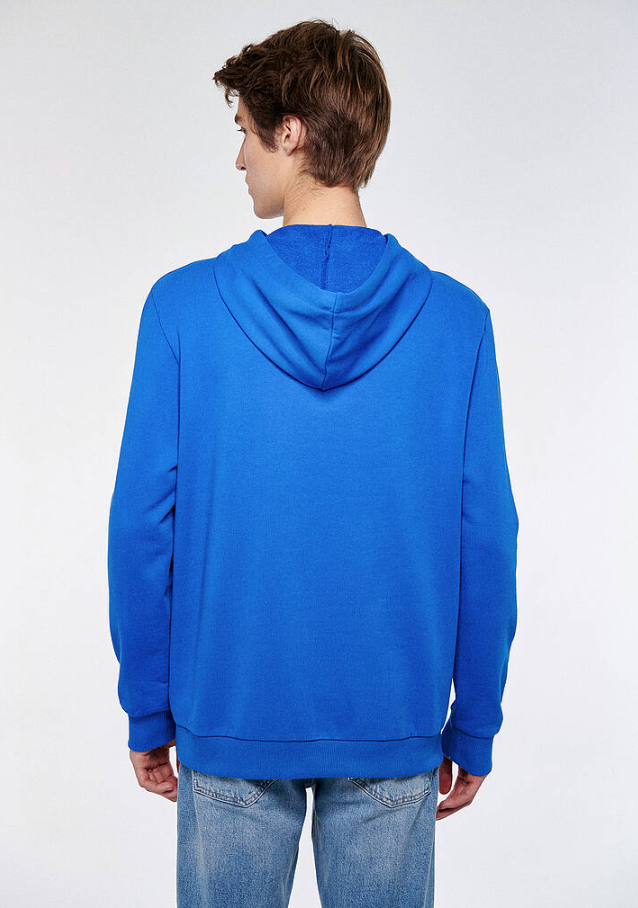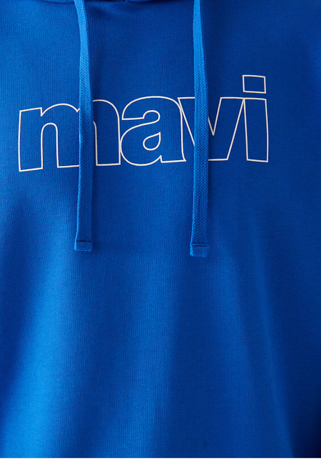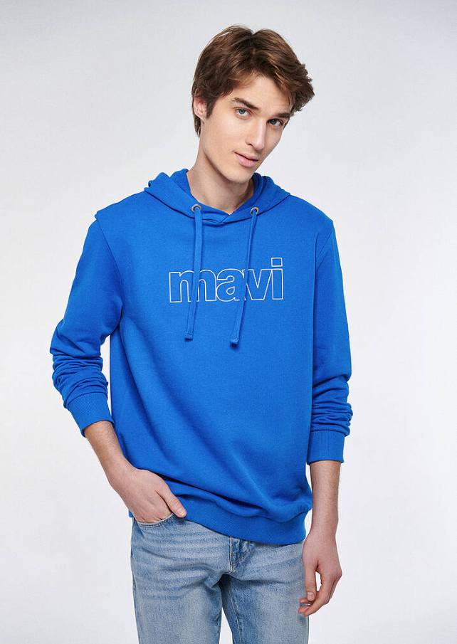 MAVİ LOGO BASKILI KAPÜŞONLU SAKS SWEATSHİRT