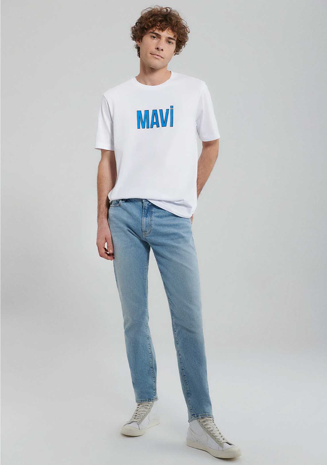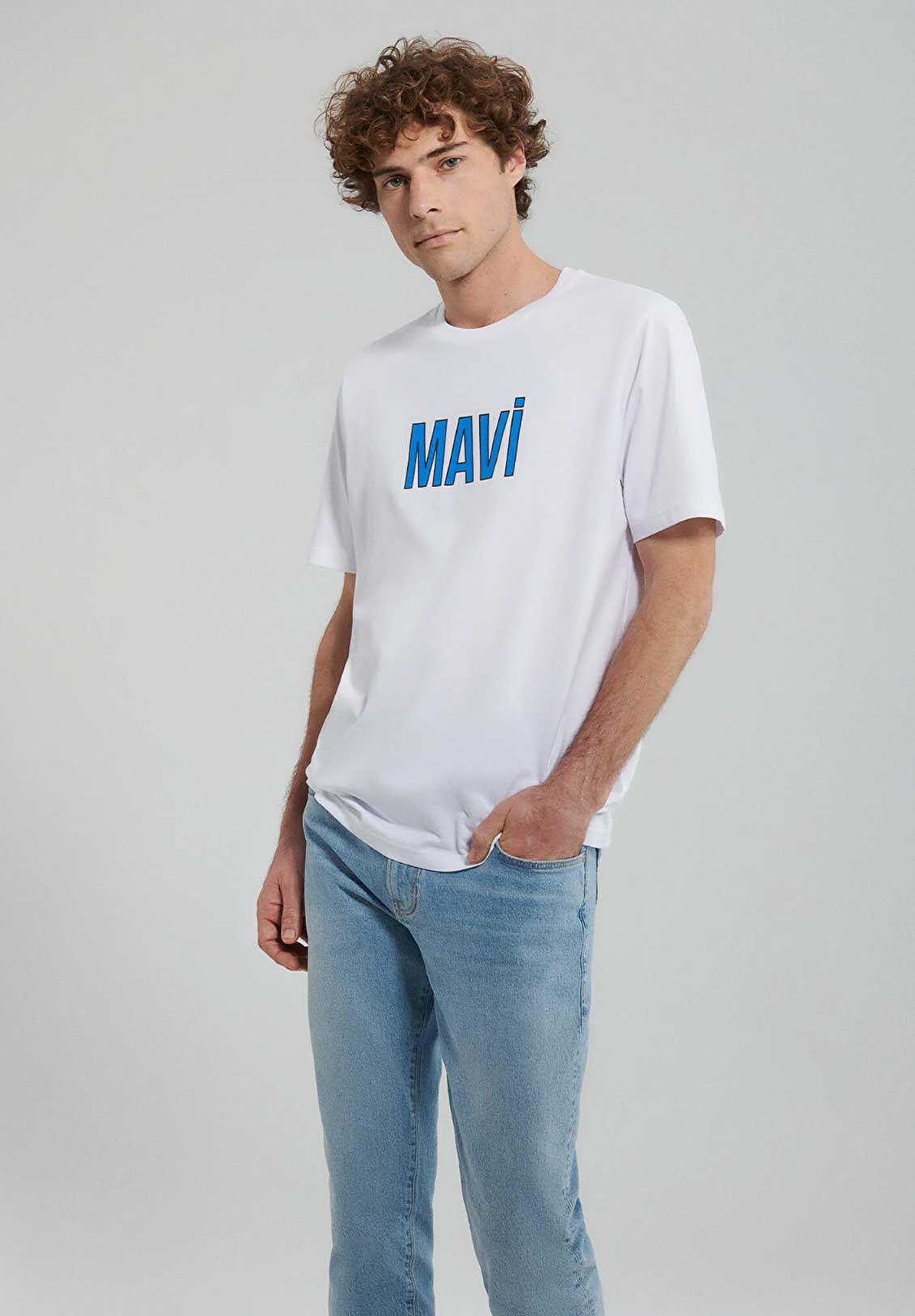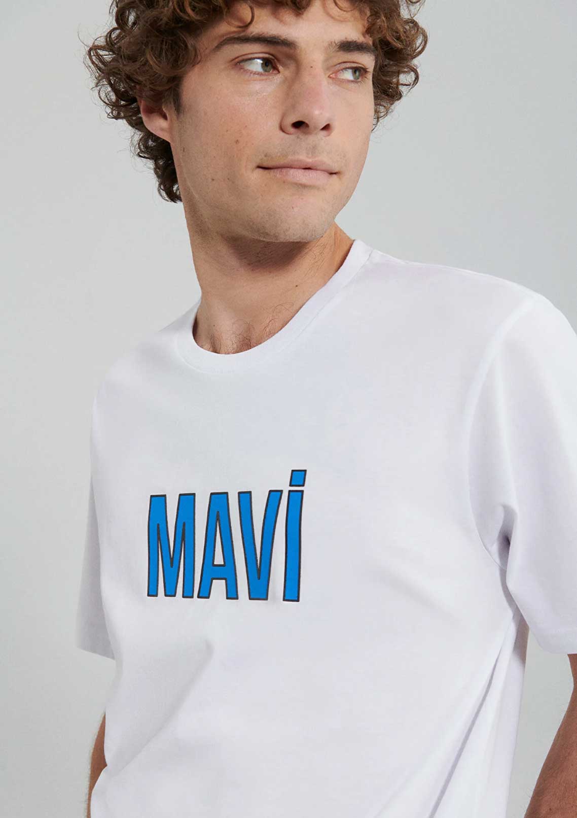 Mavi Logo Baskılı Beyaz Loose Fit Tişört