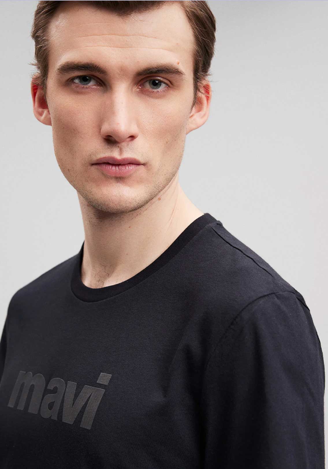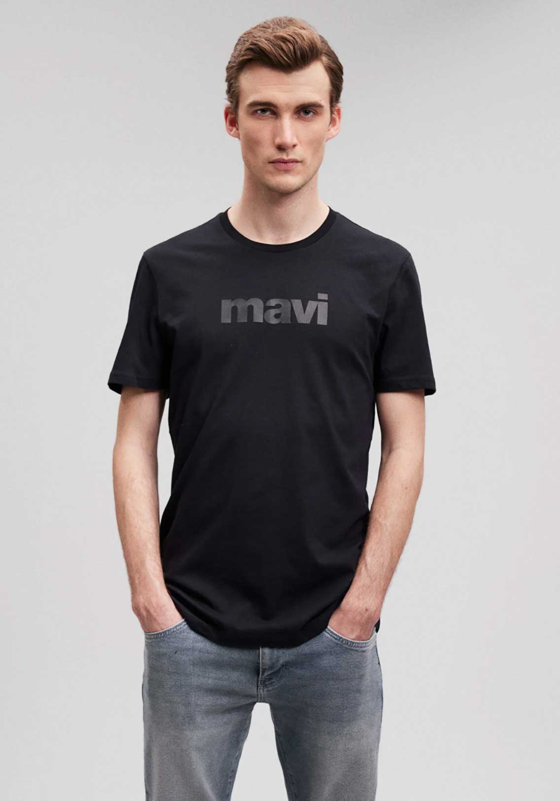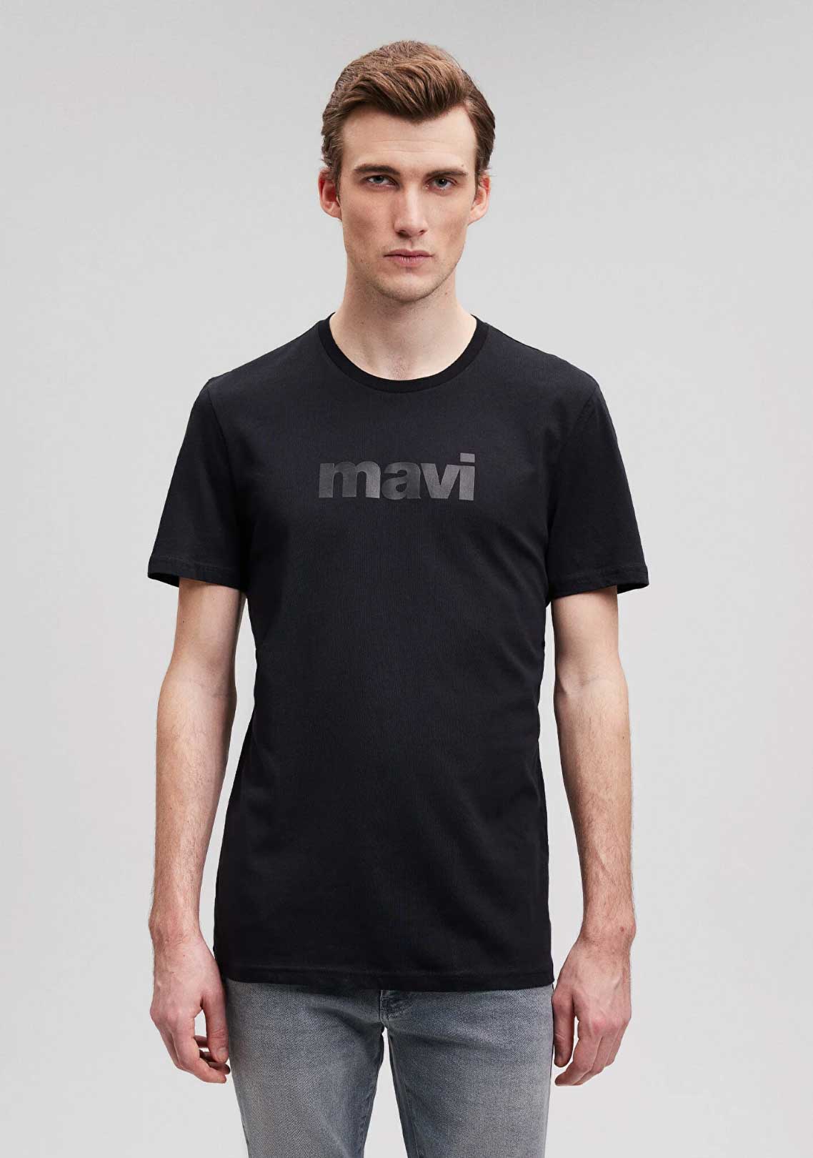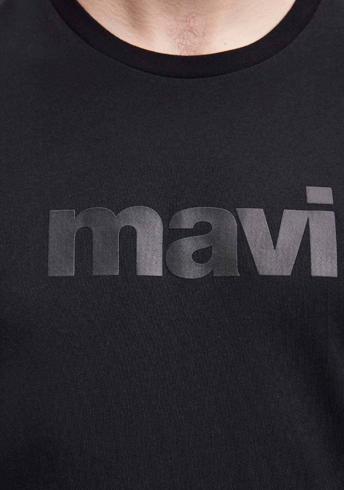 MAVİ LOGO BASKILI SİYAH SLİM FİT TİŞÖRT