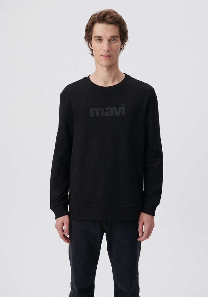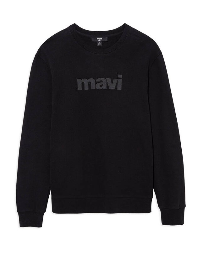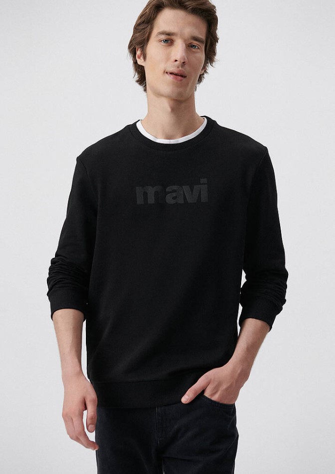 MAVİ LOGO BASKILI SİYAH SWEATSHİRT