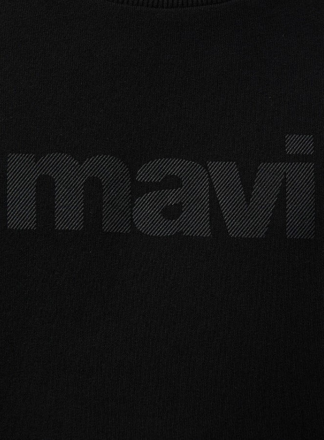Mavi Logo Baskılı Kapüşonlu Regüler Fit Siyah Sweatshirt