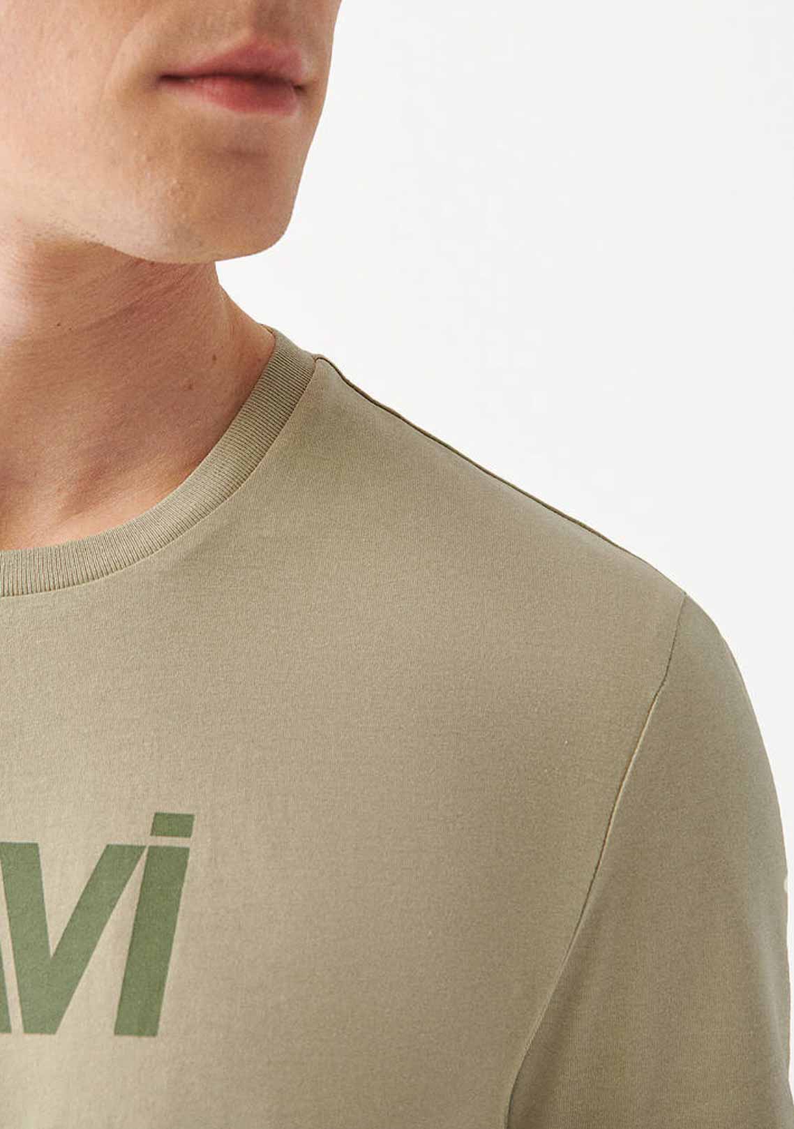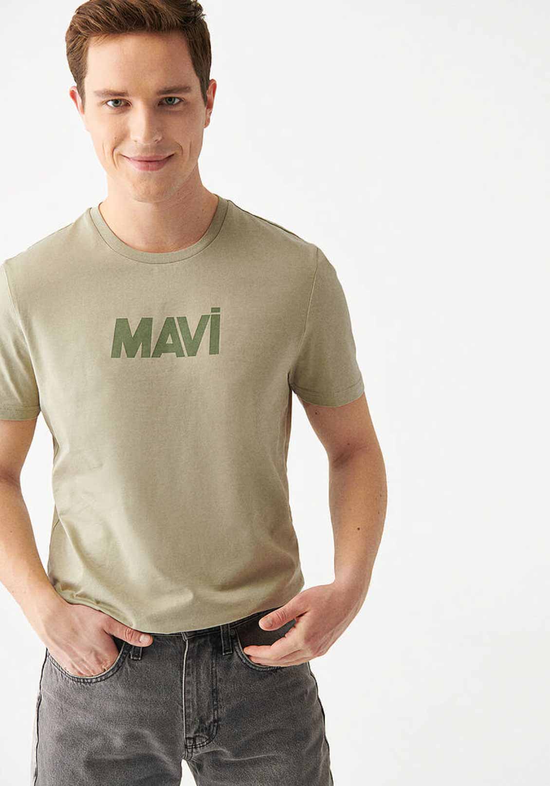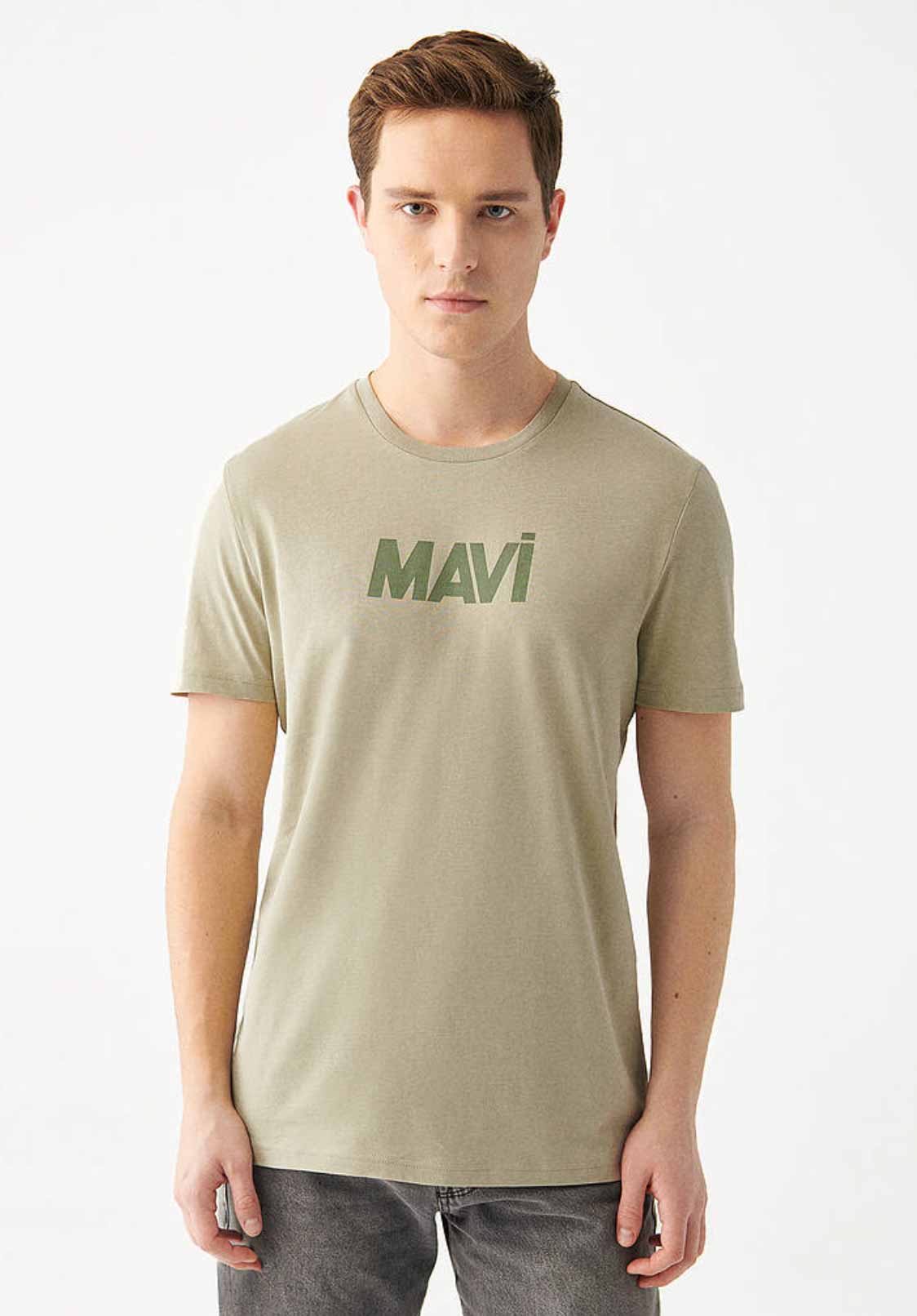 MAVİ LOGO BASKILI SOLUK HAKİ SLİM TİŞÖRT