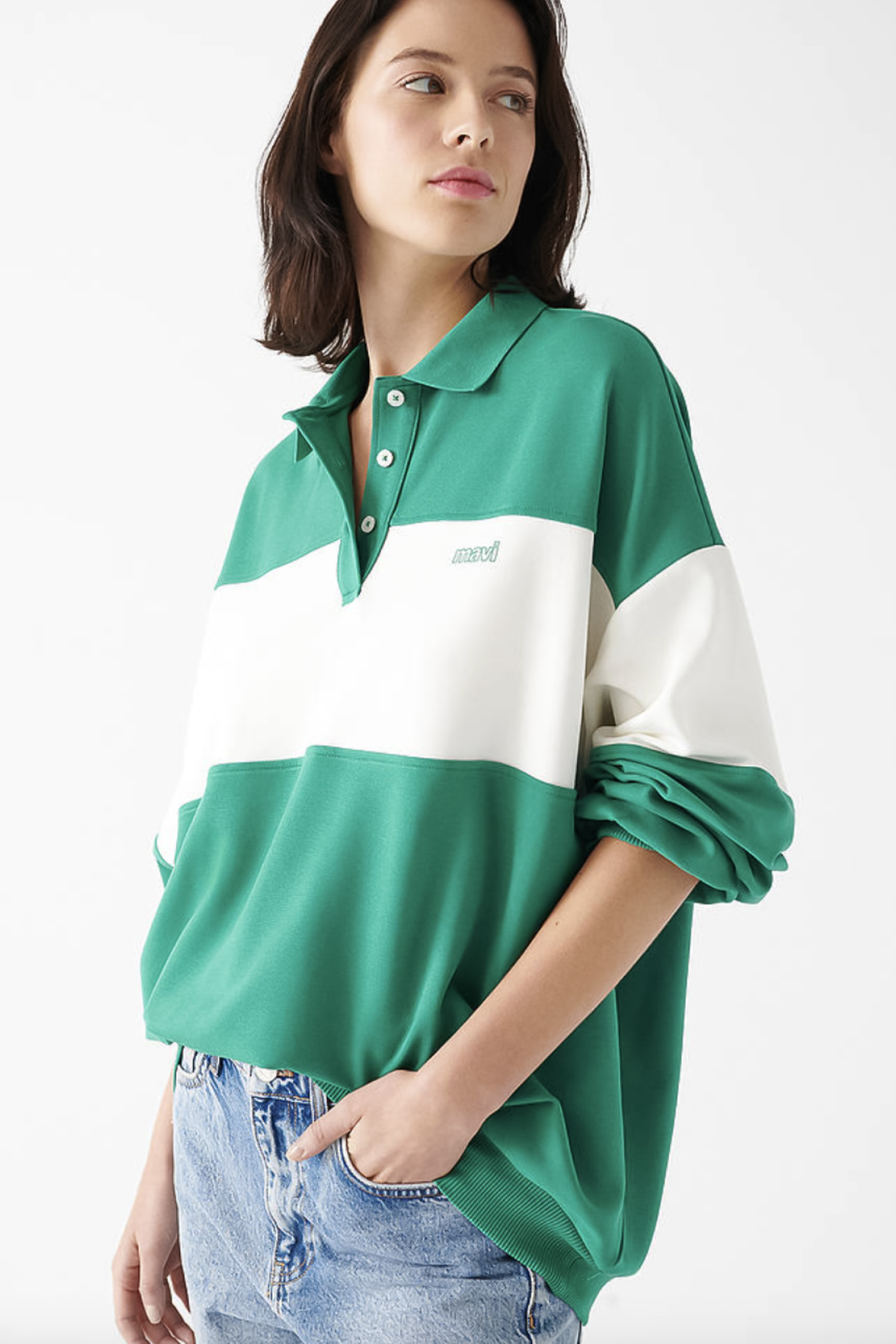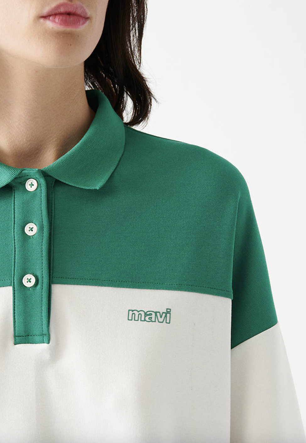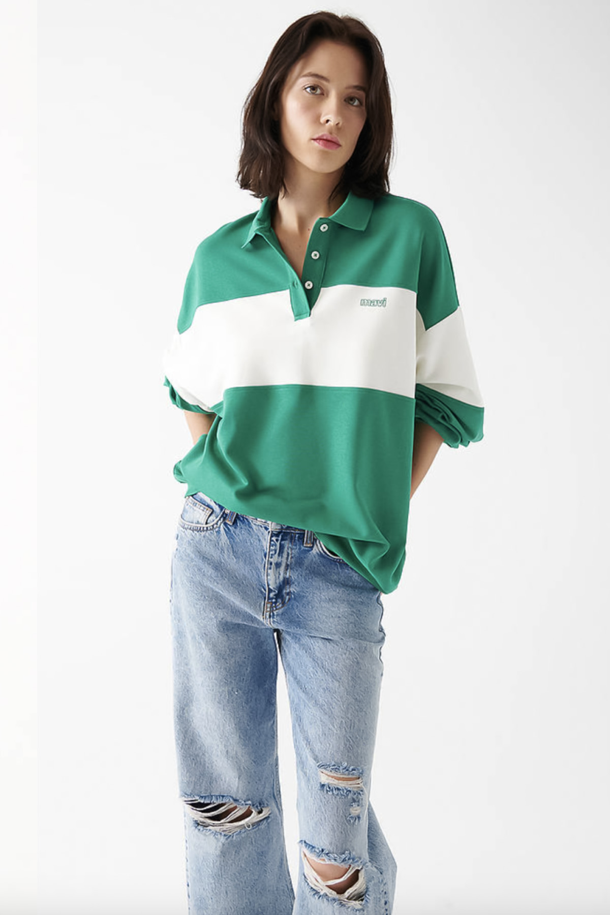 MAVİ LOGO BASKILI YEŞİL POLO OVERSİZE TİŞÖRT