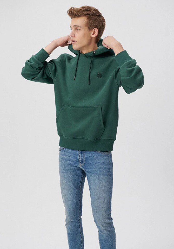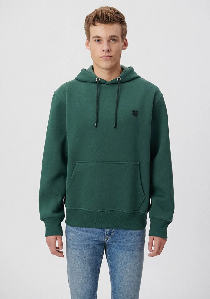 MAVİ LOGO NAKIŞLI KAPÜŞONLU ORMAN YEŞİLİ OVERSİZE SWEATSHİRT